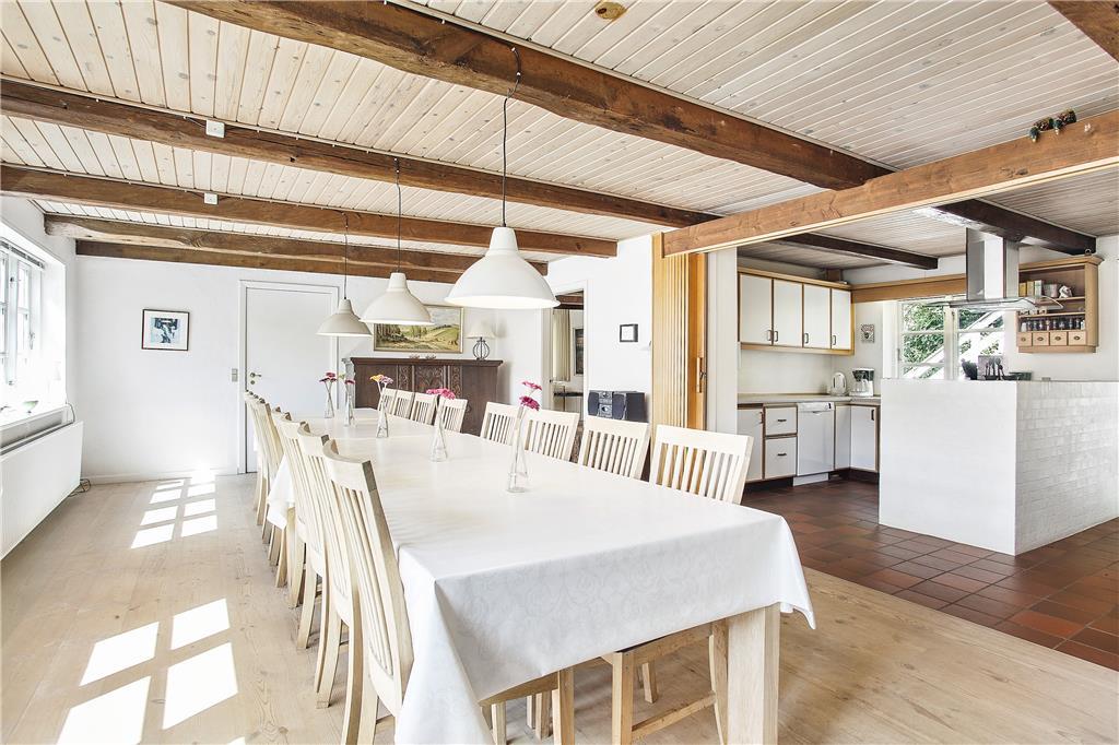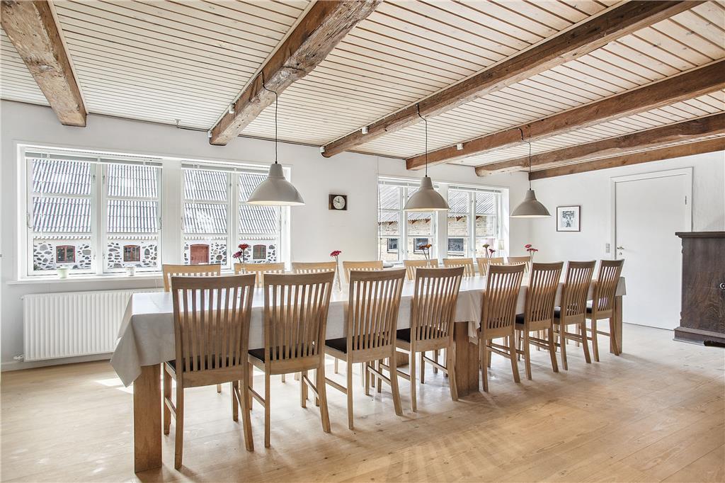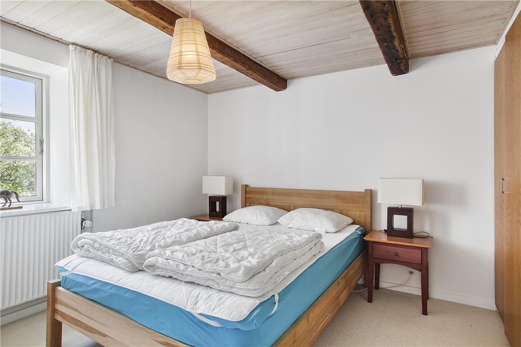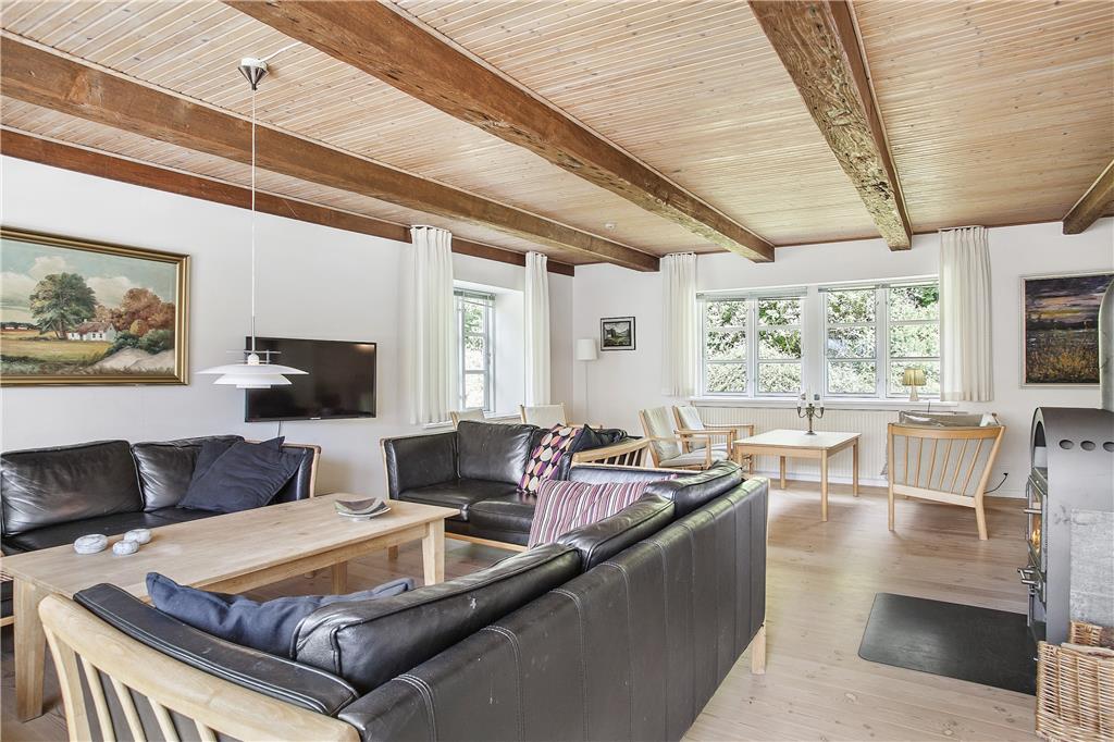 Denne store og stemningsfulde ældre landejendom på hele 410m2 er oprindeligt opført i 1860 og gennemgik i 2008 en større renovering. Med hele 10 værelser er her god plads til 24 overnattende personer, og stedet er derfor særdeles velegnet til ferie for flere familier, eller hvis man skal fejre en helt særlig begivenhed. Madlavningen klares nemt på de to komfurer, og til opbevaring af madvarer har man også to køleskabe til rådighed. Huset råder over tre badeværelser med brusekabiner og derudover også et gæstetoilet. I den ene stue kan man skrue op for hyggen ved at tænde op i brændeovnen, og vil børnene gerne se en film i fred og ro, kan de samles i den anden stue på 1.salen. Selvom man i indretningen sagtens kan fornemme stedets mangeårige historie med de små vinduer, bjælkerne i loftet og de ældre, men flotte bondemøbler, så er huset samtidigt udstyret med alverdens moderne faciliteter som opvaskemaskine, vaskemaskine, tørretumbler, parabol og trådløst internet. Alt i alt en skøn og velfungerende kombination af hygge og funktionalitet, nyt og gammelt, moderne og autentisk!