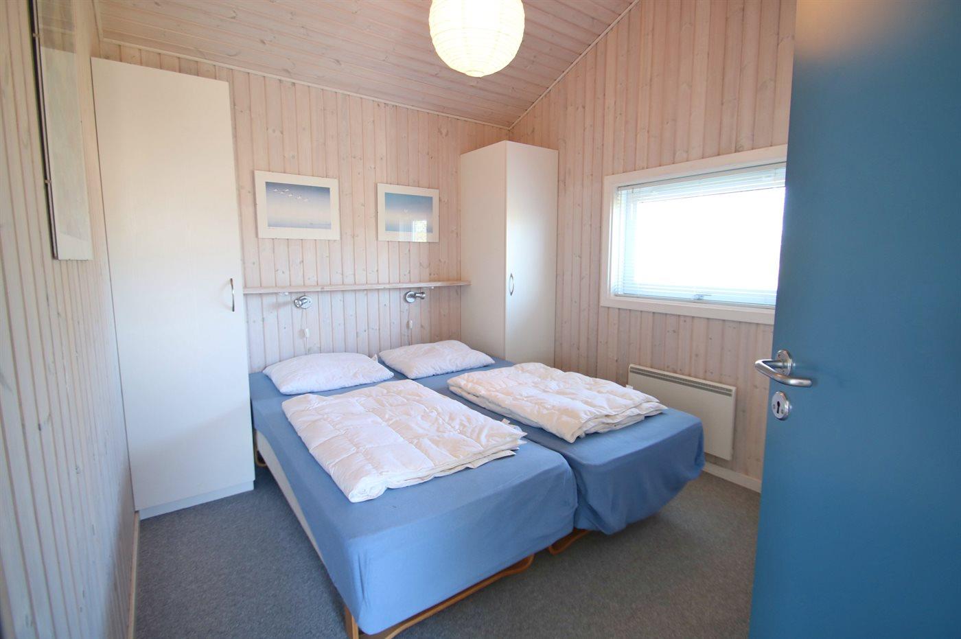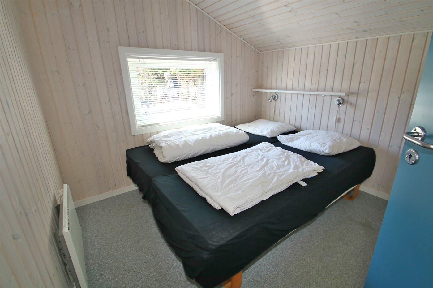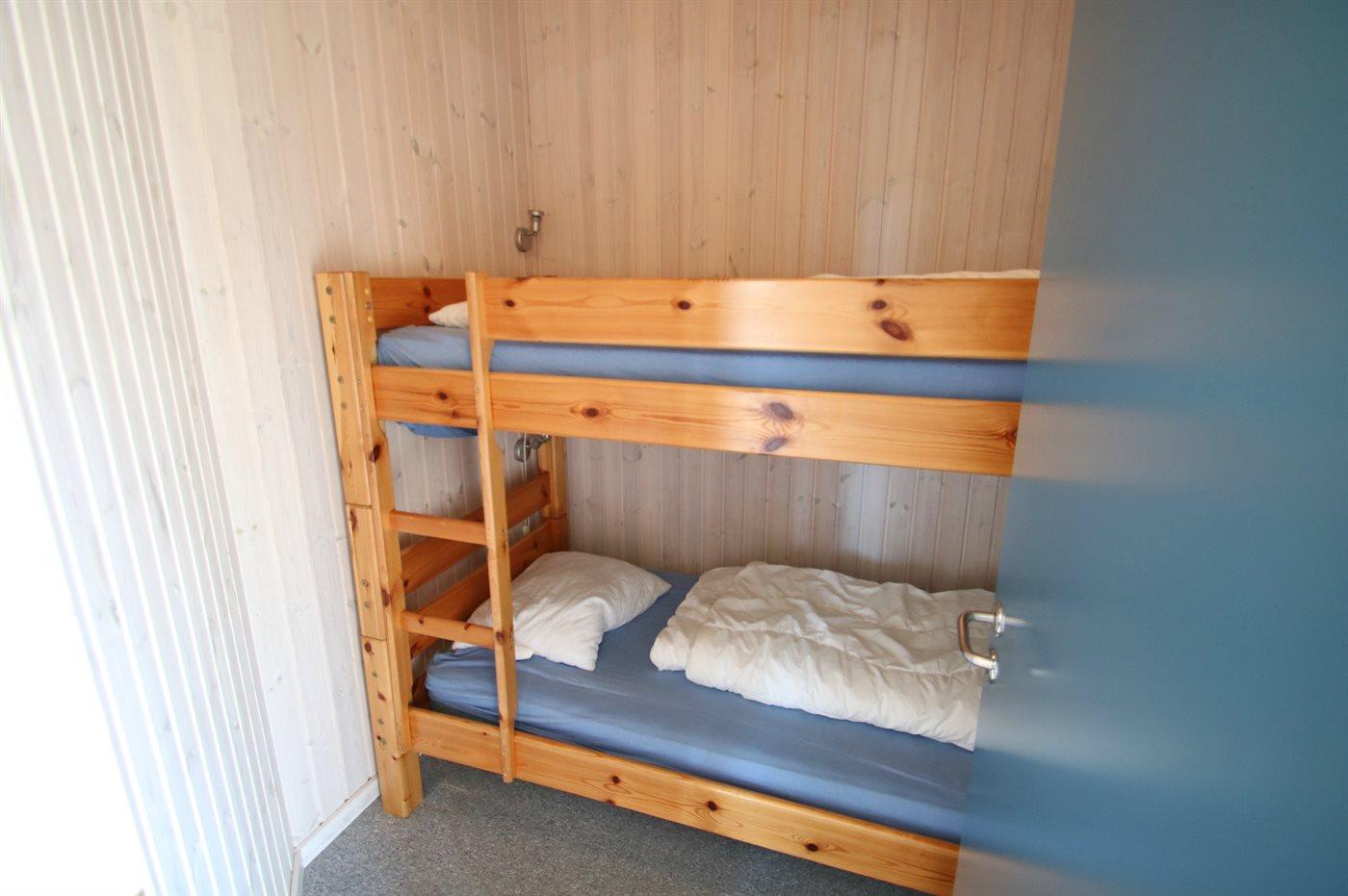 Der er i alt 3 soveværelser. Sovepladserne fordeler sig på: 4 sovepladser i dobbeltsenge. 2 sovepladser i køjeseng. Derudover er der 1 stk. barneseng.