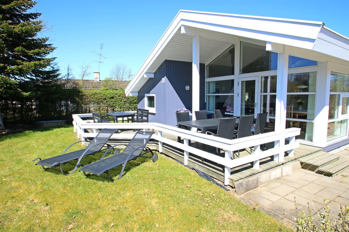 Ferieboligen er beliggende på en 700 m² stor naturgrund. Der er 300 m til havet. Nærmeste forretning er beliggende i en afstand af 3000 m. Til ferieboligen hører 15 m² terrasseareal. Desuden er der 10 m² overdækket terrasse. Sandkasse. Grill til rådighed. Parkering ved ferieboligen.