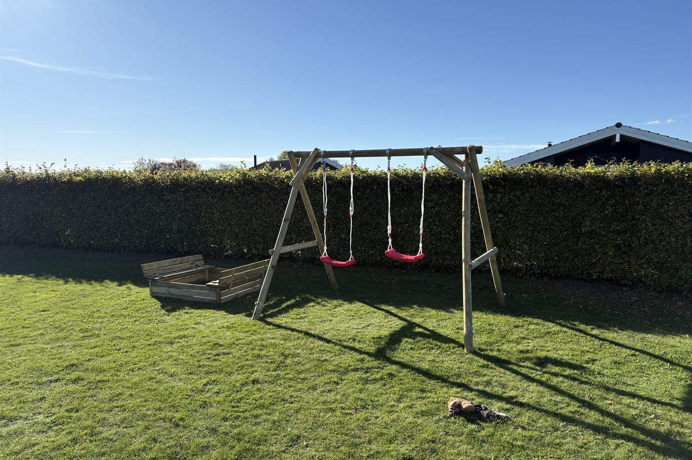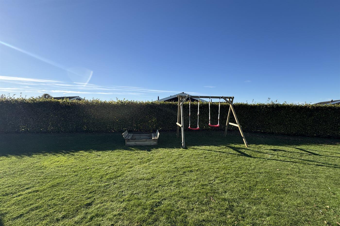 Ferieboligen er beliggende på en 900 m² stor havegrund. Der er 400 m til havet. Nærmeste forretning er beliggende i en afstand af 4000 m. Der er en golfbane i en afstand af 9000 m. Til ferieboligen hører åbent terrasseareal. Desuden er der overdækket terrasse. Gynge. Sandkasse. Grill til rådighed. Der er carport til rådighed. Parkering ved ferieboligen.
