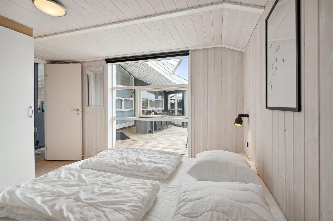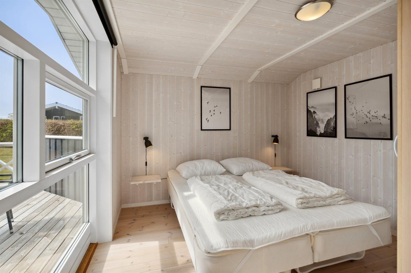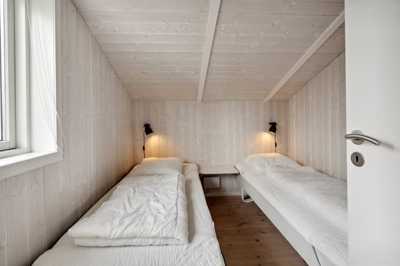 Der er i alt 3 soveværelser. Sovepladserne fordeler sig på: 4 sovepladser i dobbeltsenge. 2 sovepladser i enkeltsenge. Derudover er der 1 stk. barneseng.