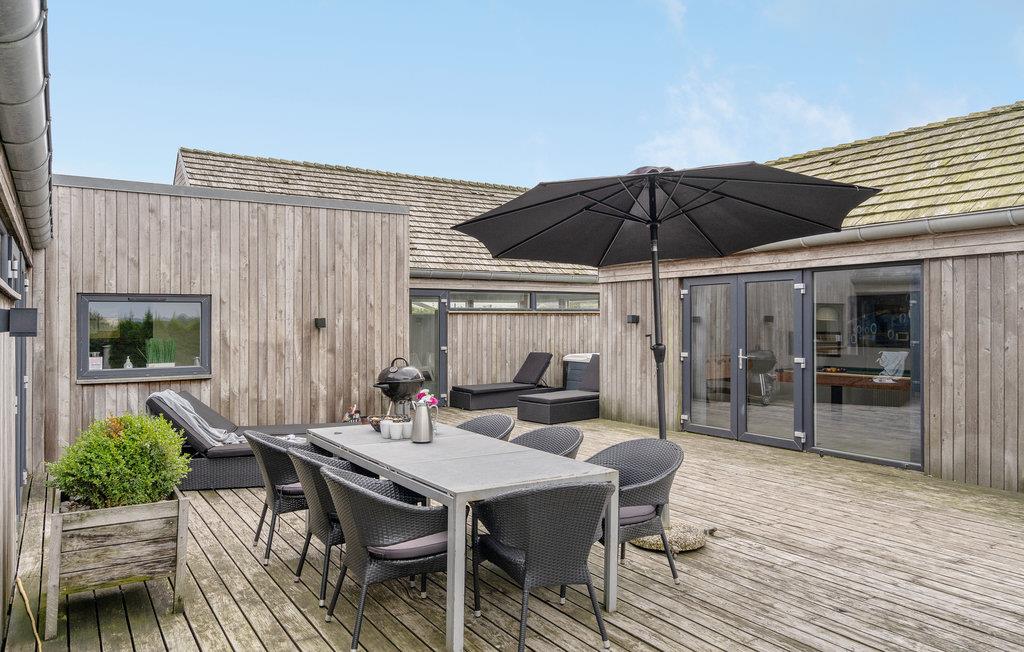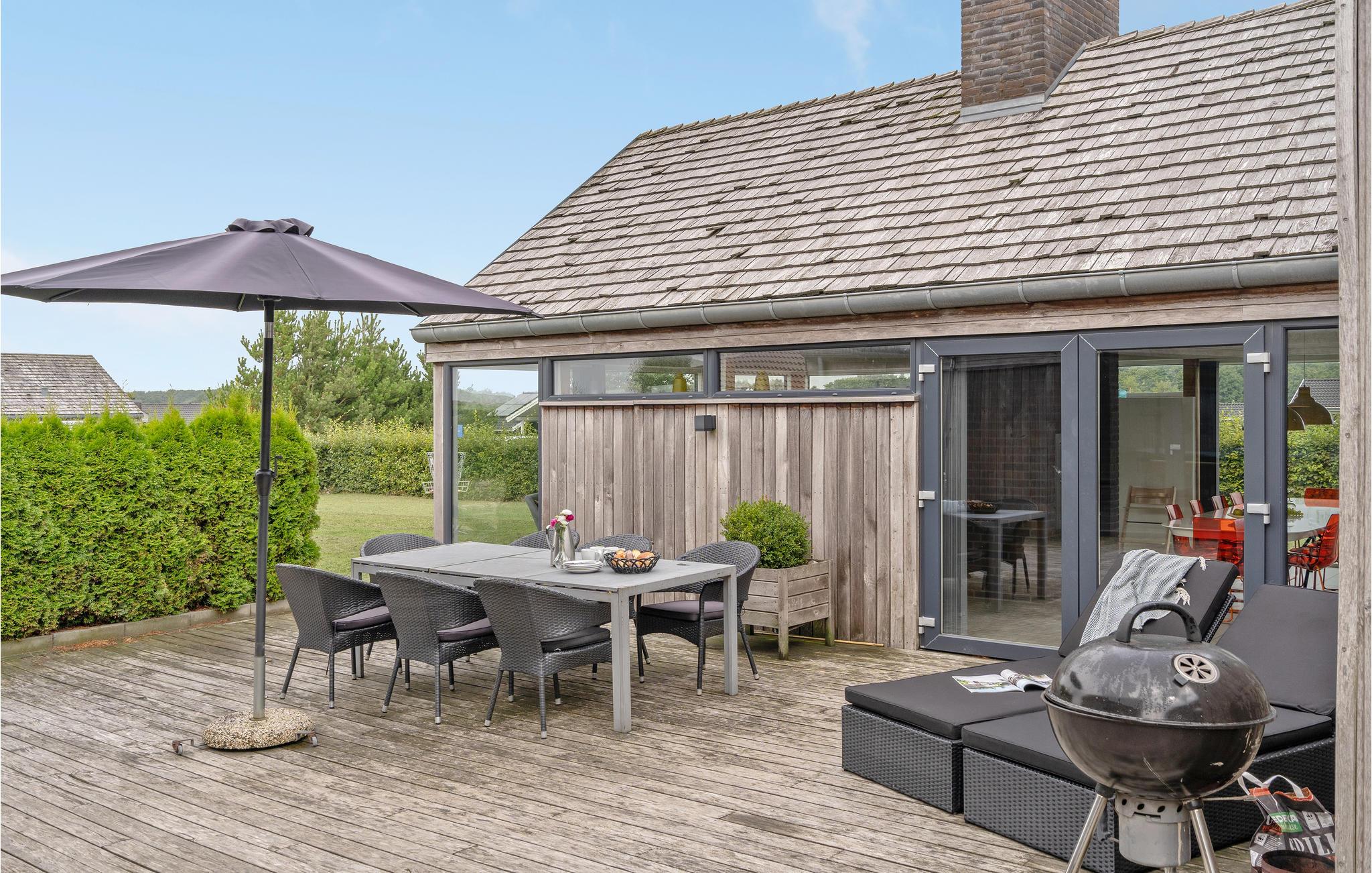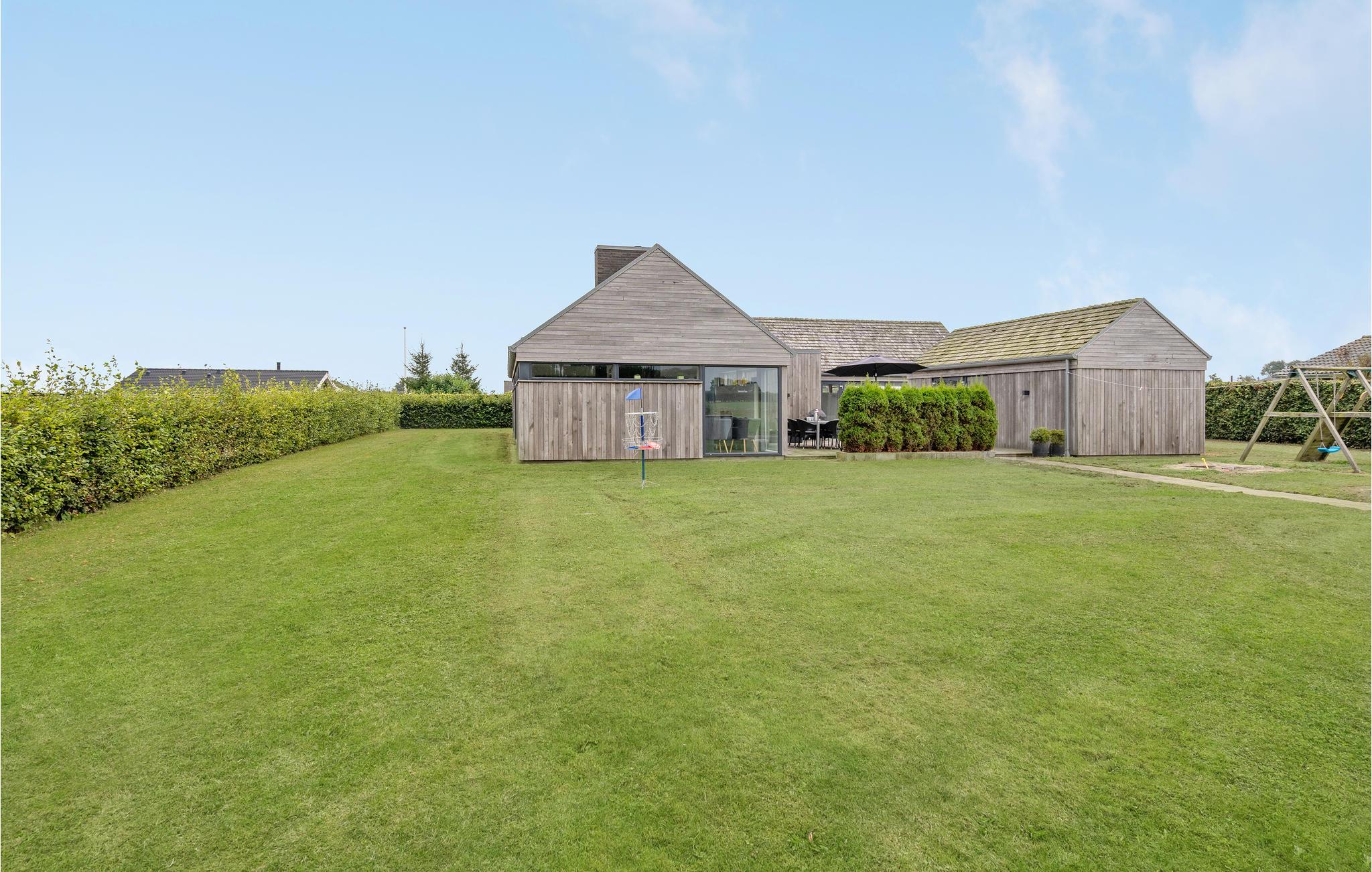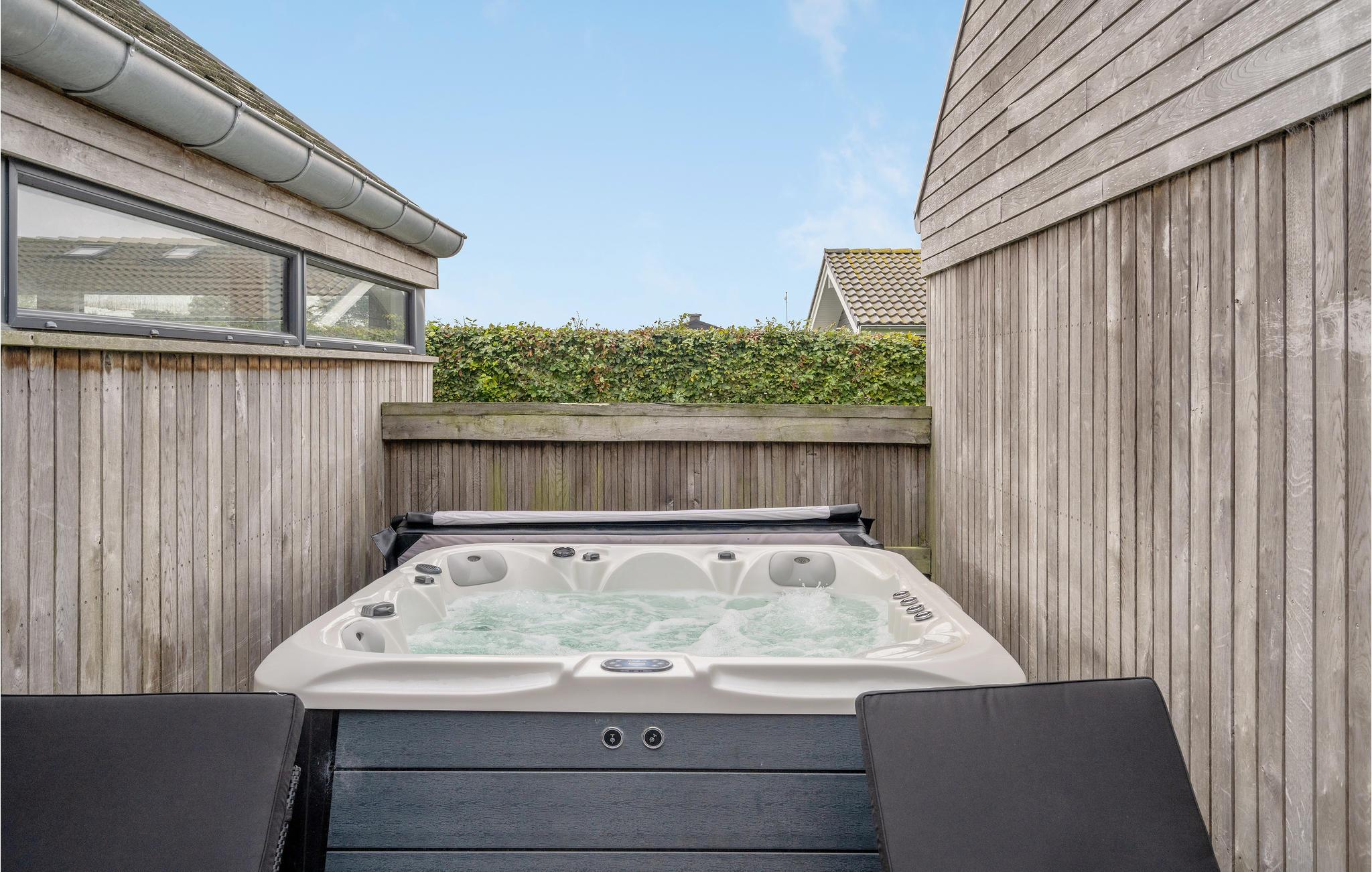 Moderne feriehus ved Flovt strand med pool, sauna og spa, perfekt til en aktiv ferie for hele familien.