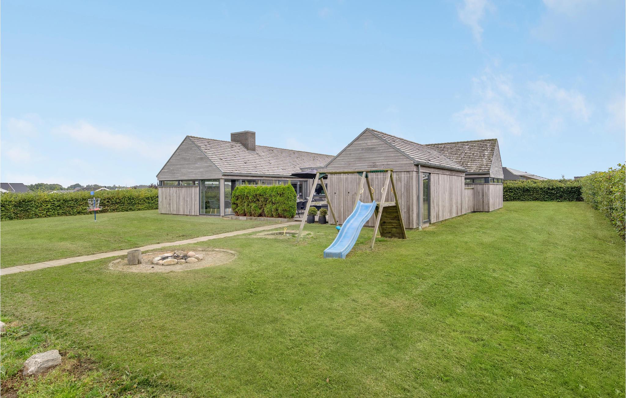 Dette pragtfulde feriehus fra 2012, ligger ved Flovt strand. Huset er smagfuldt og lyst indrettet, samt moderne møbleret. Dejligt køkken/alrum, gode soveværelser og flotte badeværelser. Her har I alt hvad hjertet kan begære, hvis I gerne vil have en aktiv ferie. Der er et stort indendørs pool område, hvor I kan tage jer en dukkert uanset vejret, slappe af i saunaen eller nyde boblernes massage i spaen. Huset har separat aktivitets område, med både bordfodbold, poolbord og andre aktiviteter. Udendørs er der legeredskaber til børnene samt et ude spa. I kan også slappe af på de dejlige terrasser. Huset ligger tæt ved områdets absolut bedste badestrand. Huset er et godt udgangspunkt for udflugter til f.eks. Oplevelsesparken Universe i syd, til Legoland mod nord. I området er der mange nye huse på vej, og der vil på nogle af grundene være igangværende arbejde.