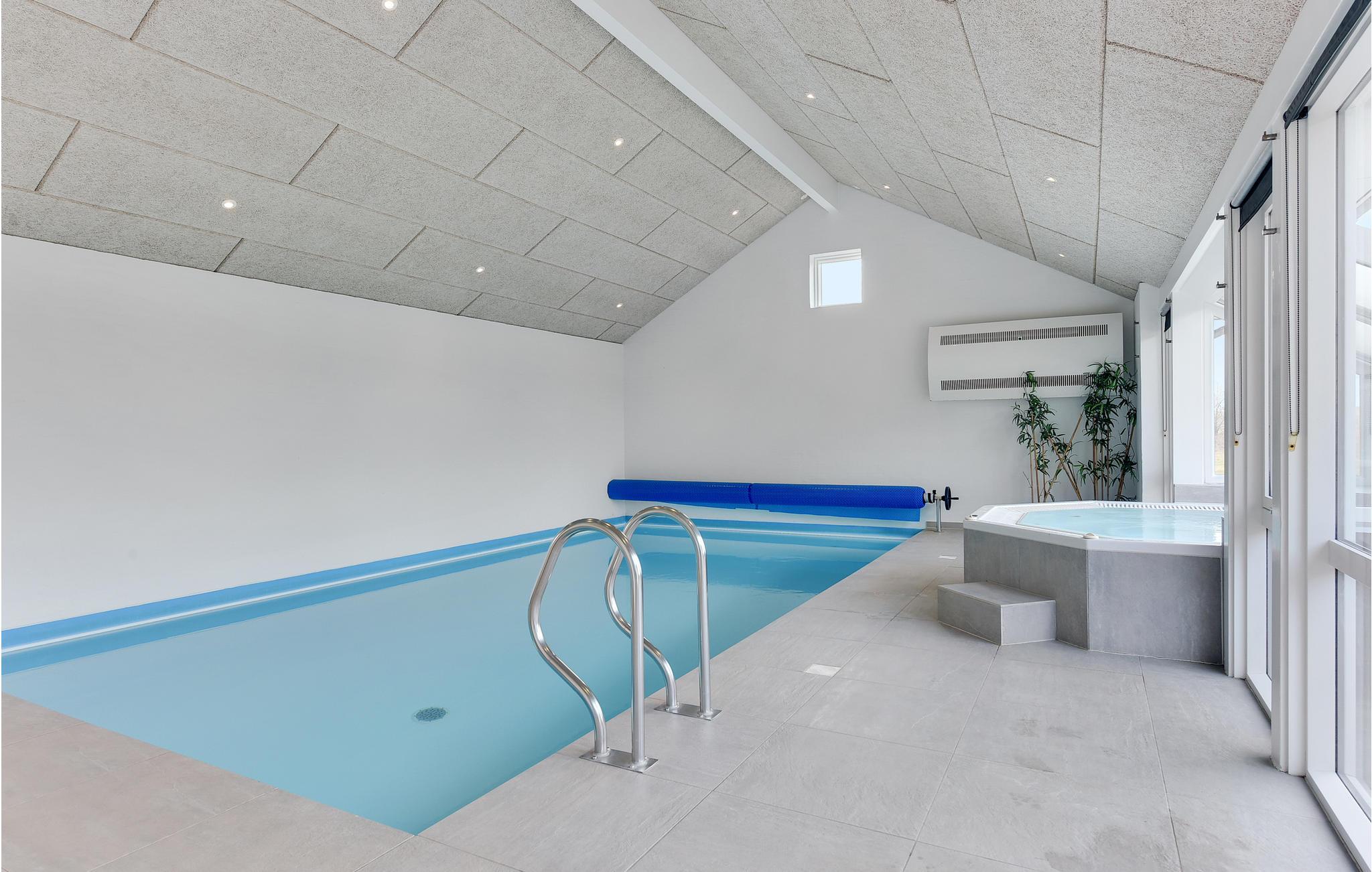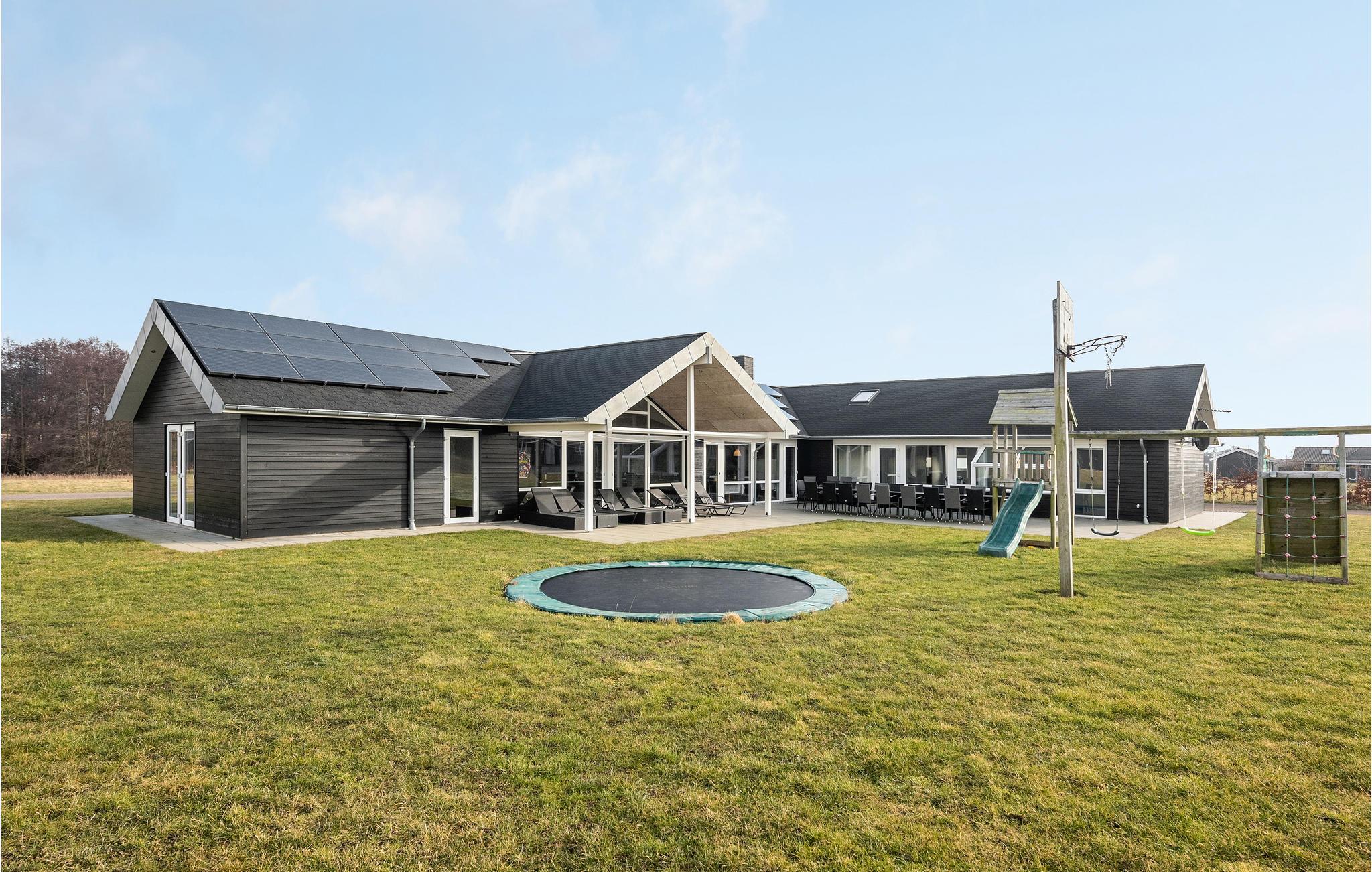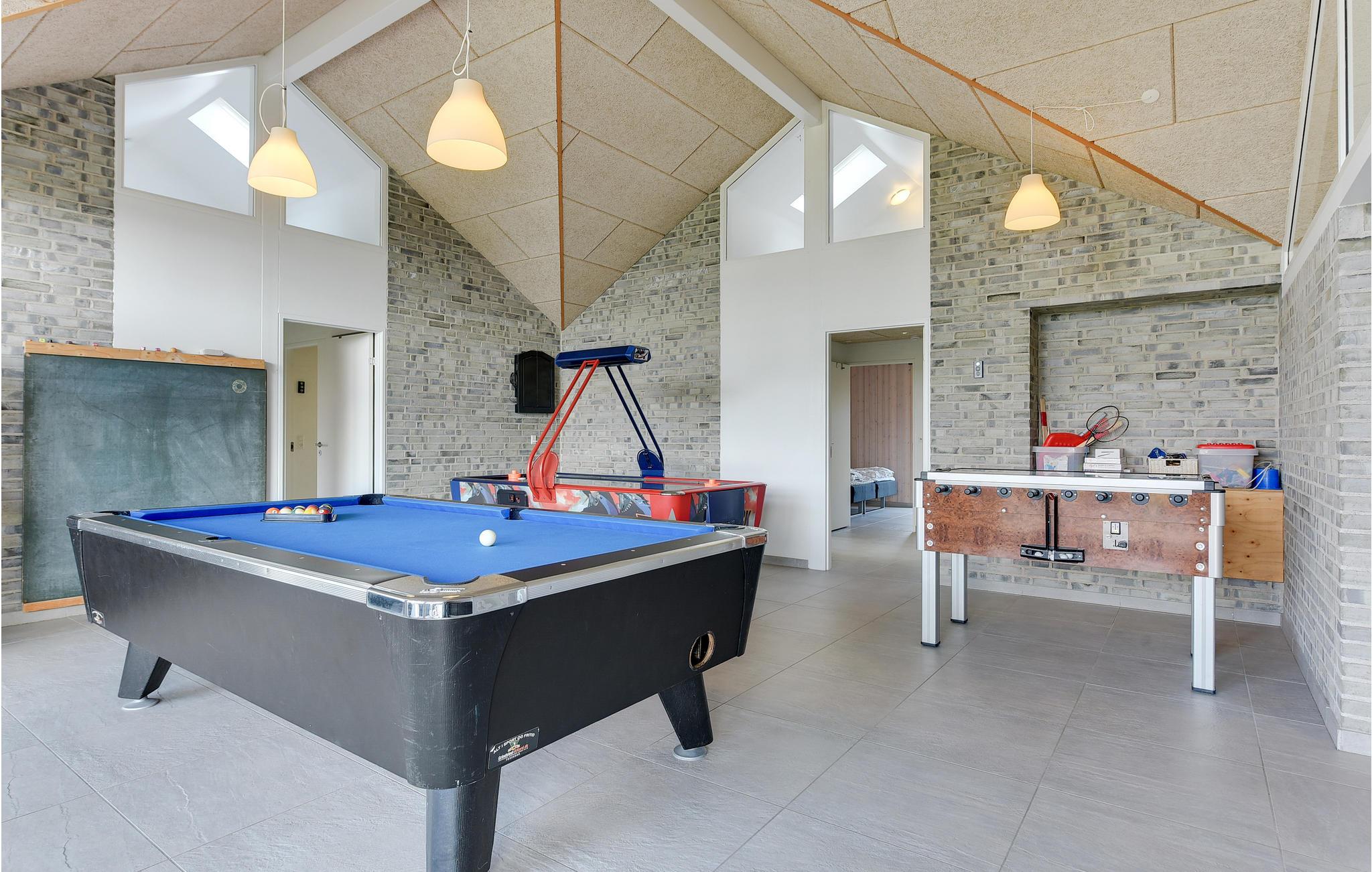 Stort feriehus ved Flovt Strand med swimmingpool, aktivitetsrum og moderne faciliteter for hele familien.