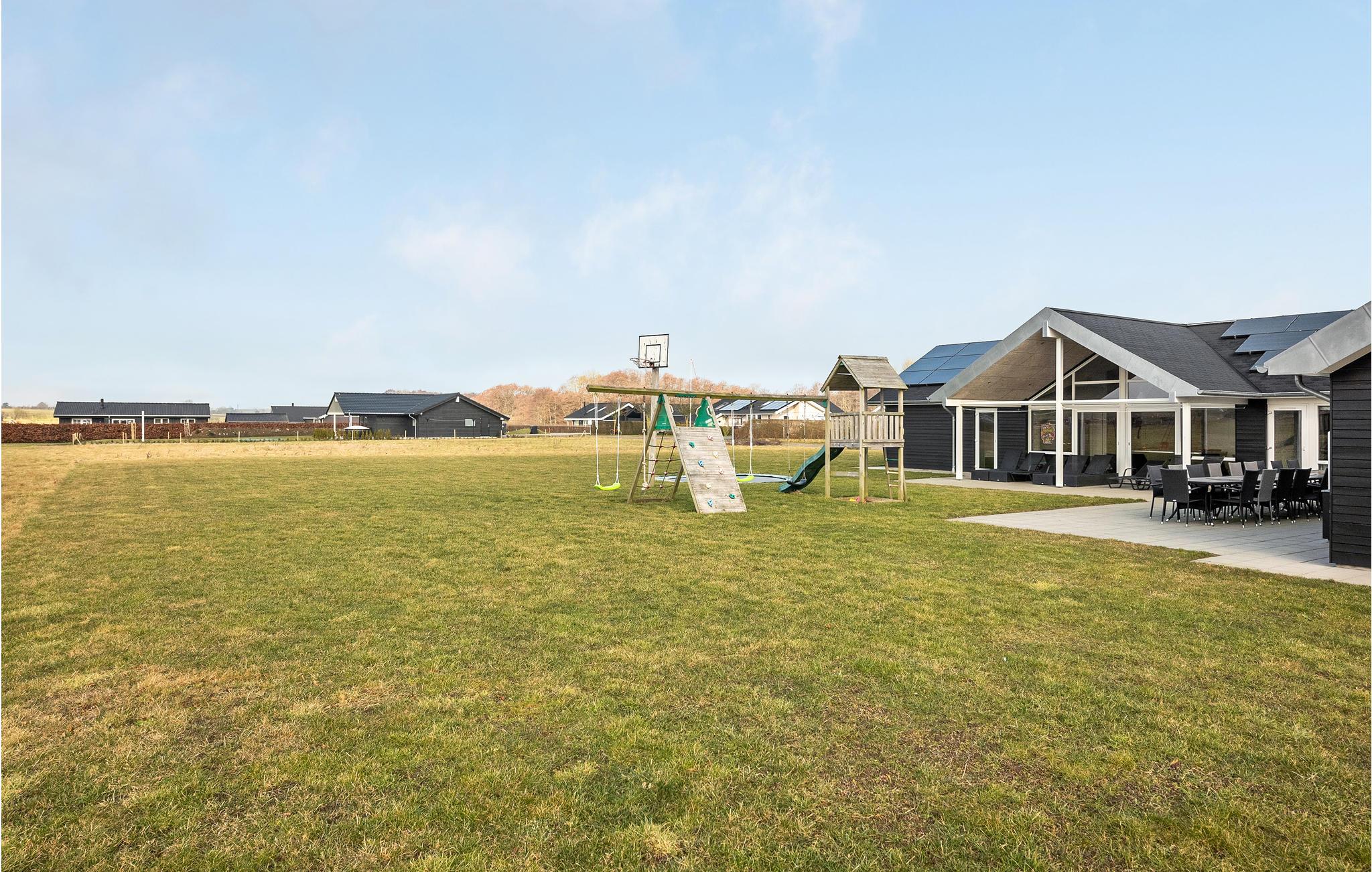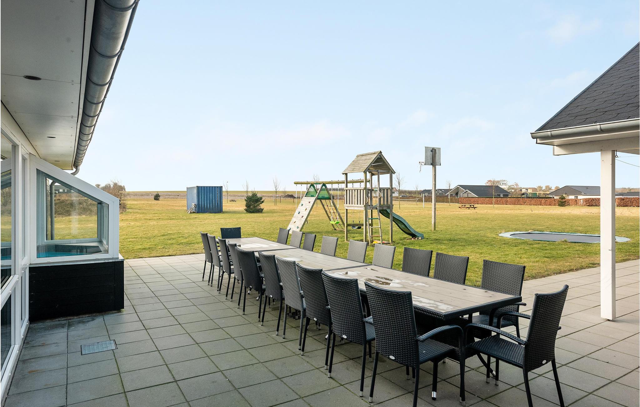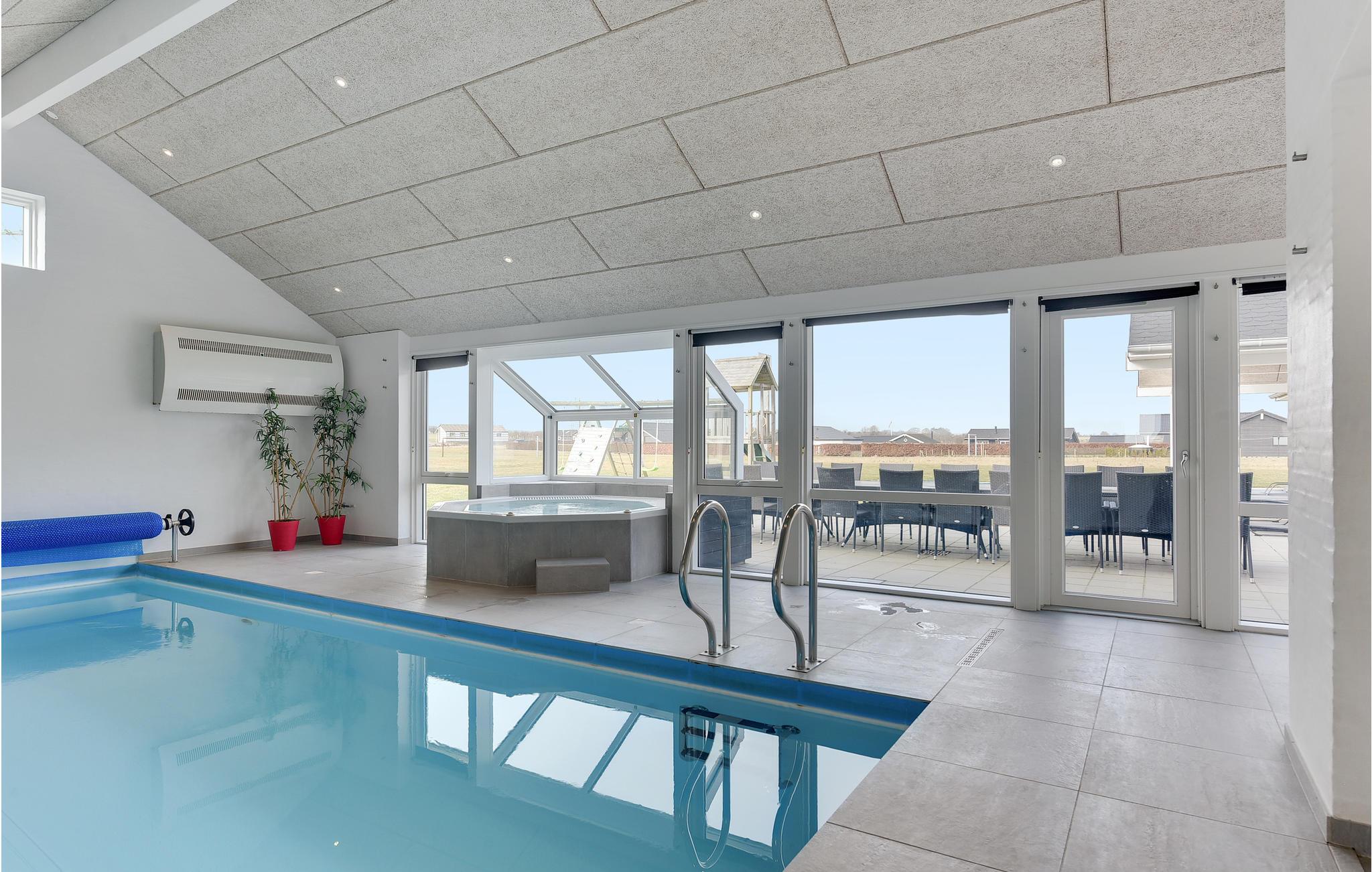 Stort feriehus ved Flovt Strand med swimmingpool, aktivitetsrum og moderne faciliteter for hele familien.