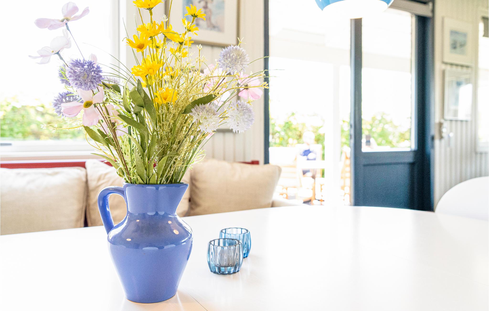 Ved den skønne Flovt Strand ligger dette dejlige sommerhus, der er perfekt til rammerne for en god ferie i Danmark. Sommerhuset ligger på en rolig vej med baghaven ud mod et naturområde. Den lyse stue, der ligger i åben forbindelse med køkkenet, har et dejligt lysindfald fra de store vinduer ud mod terrassen. Huset fremstår generelt lyst og dejligt i skandinavisk stil. Der er to badeværelser i huset. Til huset hører en stor overdækket terrasse, der gør det muligt at forlænge udendørs timerne. Det er en chromecast og kombineret vaskemaskine/tørretumbler i huset.