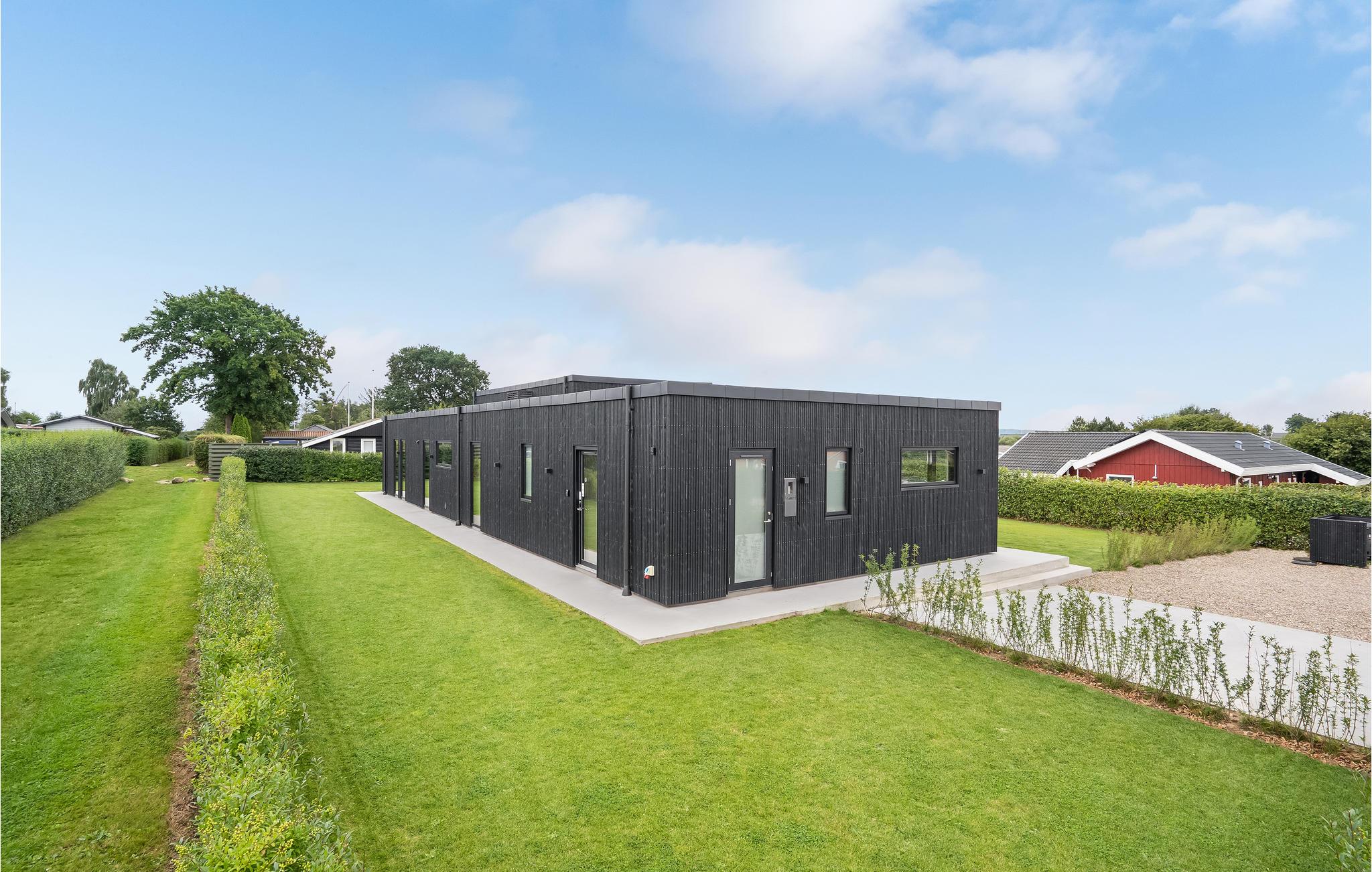 Luksushus med spa og terrasse nær Flovt Strand, ideelt til afslapning og naturoplevelser.