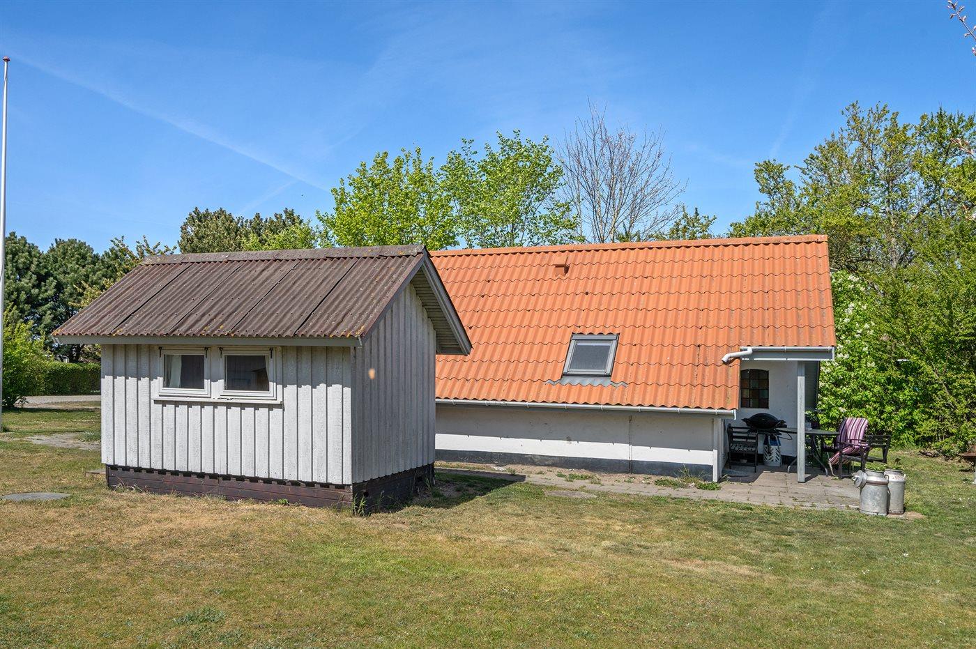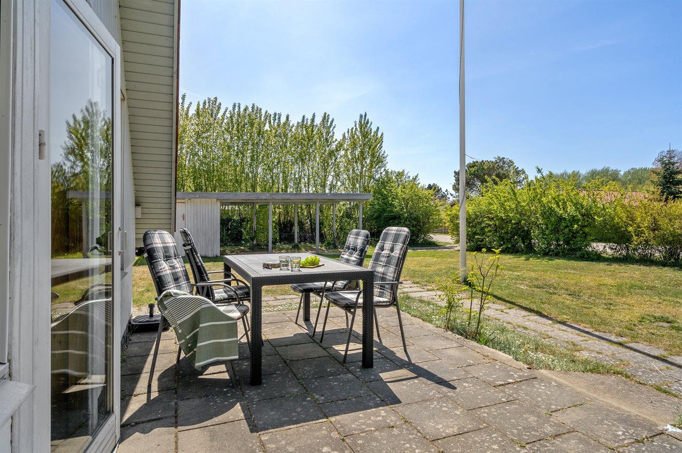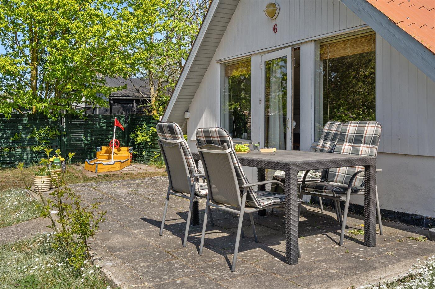 Ferieboligen er beliggende på en 808 m² stor naturgrund. Der er 225 m til havet. Der er en badebro i nærheden. Nærmeste forretning er beliggende i en afstand af 1900 m. Der er en golfbane i en afstand af 5600 m. Til ferieboligen hører 25 m² terrasseareal. Desuden er der 3 m² overdækket terrasse. Der er redskabsrum. Sandkasse. Grill til rådighed. Der er carport til rådighed. Parkering ved ferieboligen.