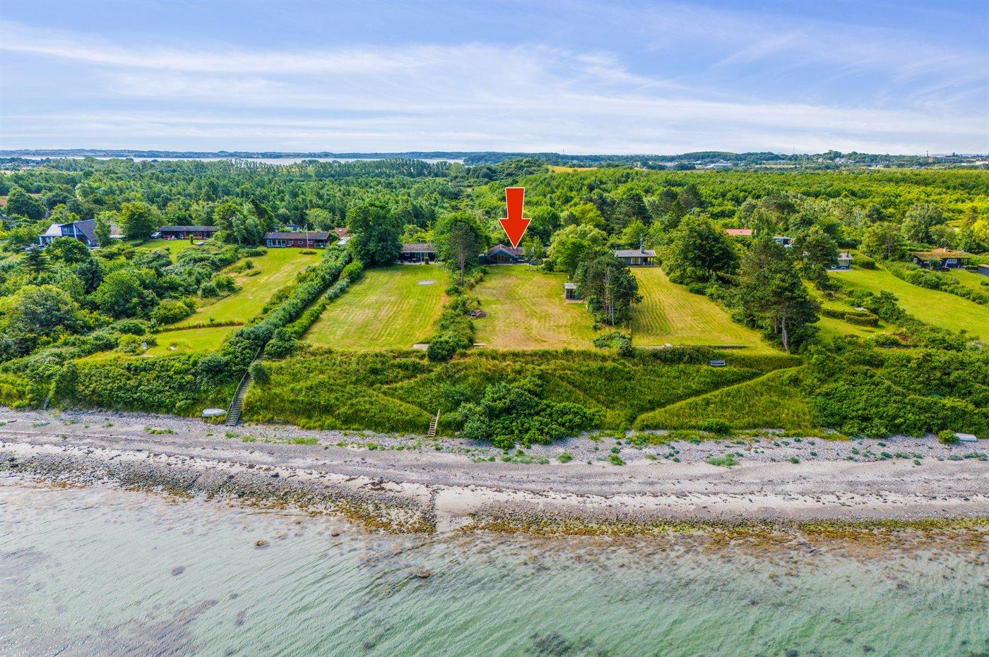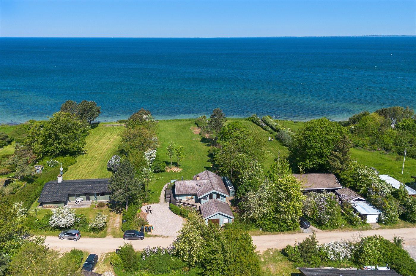 Hyggeligt sommerhus i første række med fuld havudsigt og direkte adgang til børnevenlig sandstrand ved Storebælt.