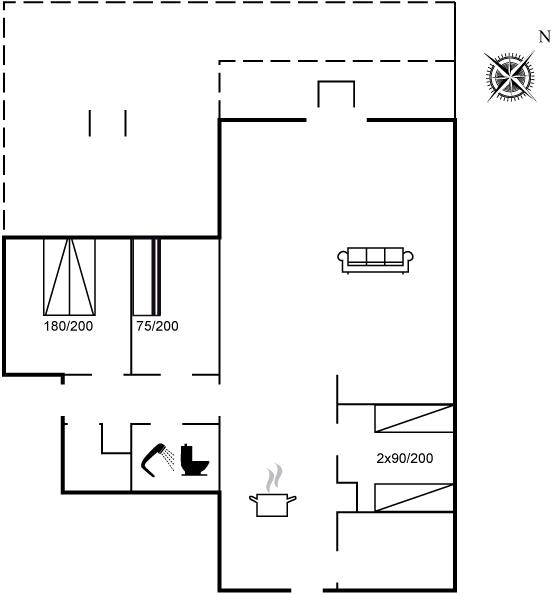 Der er i alt 3 soveværelser. Sovepladserne fordeler sig på: 2 sovepladser i dobbeltseng. 2 sovepladser i enkeltsenge. 2 sovepladser i køjeseng.