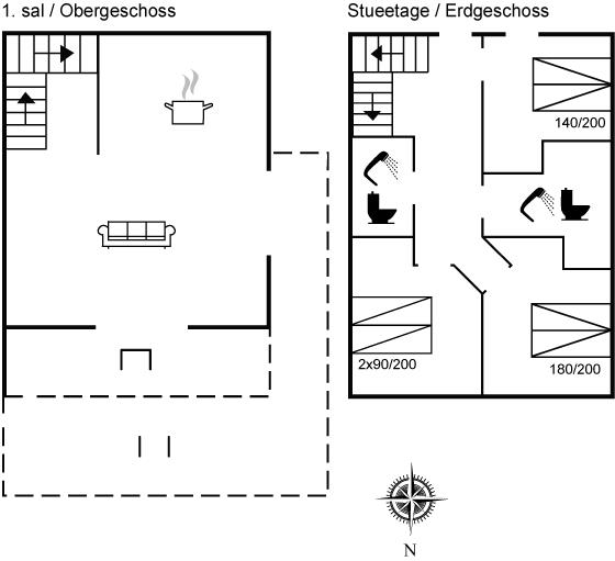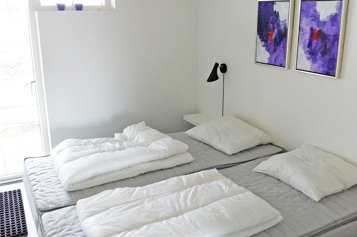Der er i alt 3 soveværelser. Sovepladserne fordeler sig på: 4 sovepladser i dobbeltsenge.2 sovepladser i elevationssenge. Derudover er der 1 stk. barneseng.