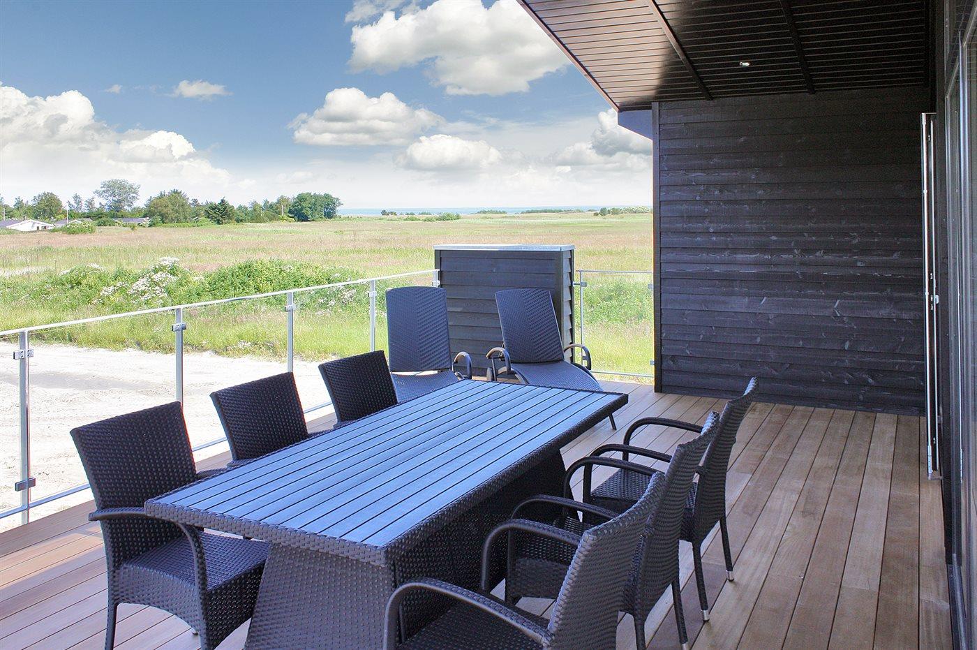 Flot, førsteklasses sommerhus beliggende i 1. række ud mod havet, med havudsigt fra såvel hus som grund. Det er trygt og nemt at bevæge sig rundt i området med trafiksikre adgange til alle områdets øvrige aktiviteter.