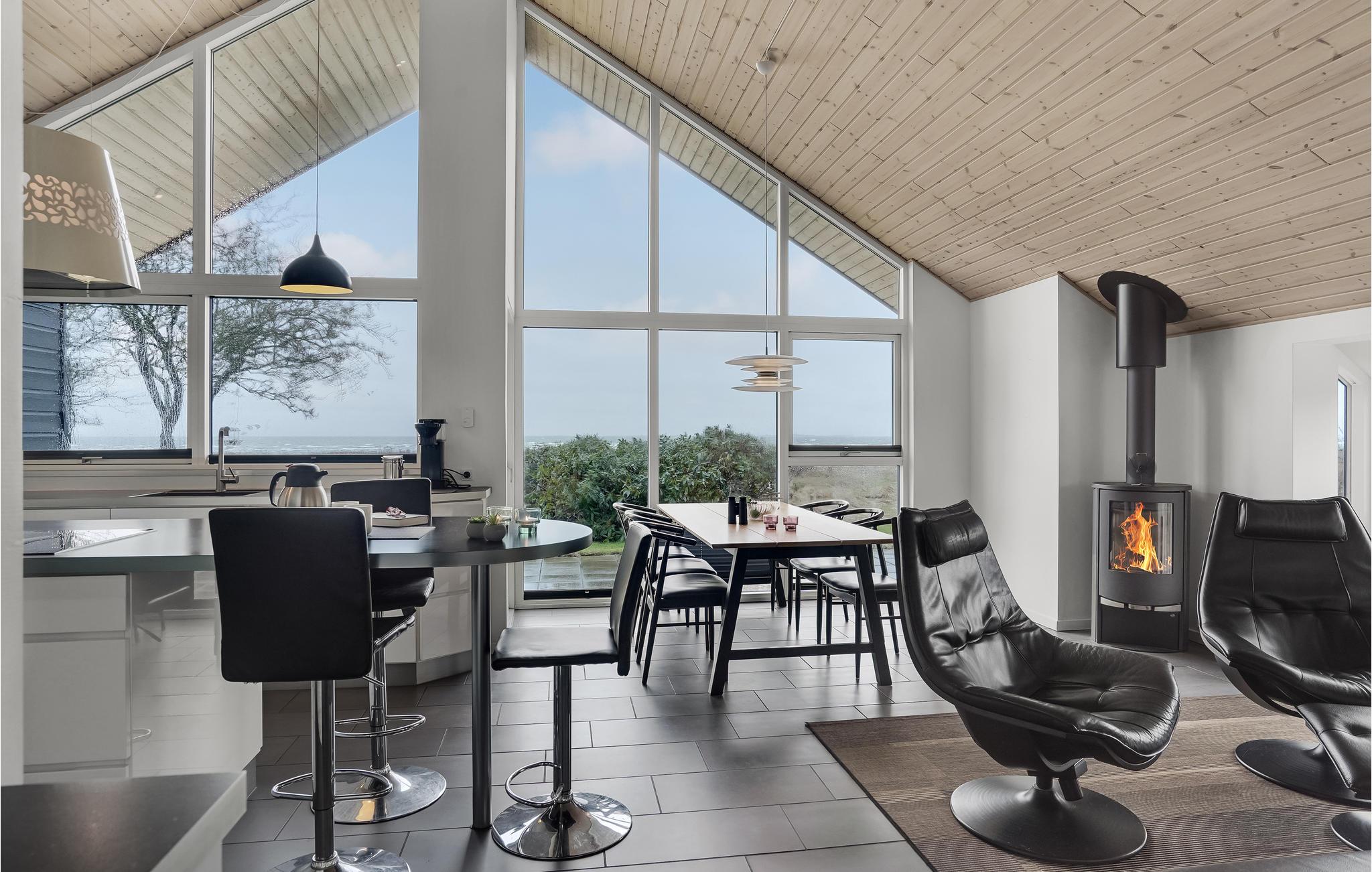 Velkommen til et vidunderligt havpanorama og en helt særlig beliggenhed i første række til Frederikshavn Nordstrand. Boligen er flot og moderne med god plads til fælles aktiviteter samt lyse, åbne lokaler, der gør det nemt at slappe af. Nyd dagens måltider sammen med udsigt til omgivelserne og mærk, hvordan roen automatisk sænker sig.Om aftenen kan I læne jer tilbage i sofaen og se en god film, mens ilden knitrer hyggeligt i brændeovnen.