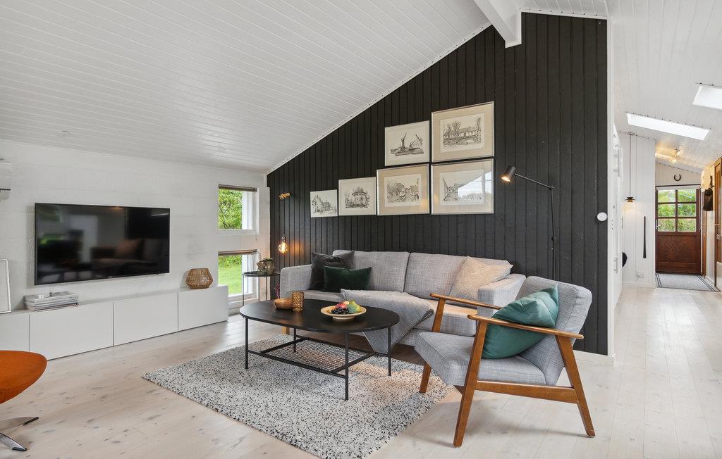 Skab uforglemmelige ferieminder med dem, I holder af, i dette komfortable hus, hvorfra I kan nå havet til fods. Huset imponerer med sin stilfulde, lyse atmosfære og sine smagfulde, moderne møbler. Lav mad med udsigt til haven og glæd jer til dejlige aftener ved ilden, der knitrer i den hyggespredende brændeovn. Tilbring skønne timer udenfor på terrassen, hvor I kan nyde solen i en liggestol med udsigt til den velholdte have og senere grille med hele familien.