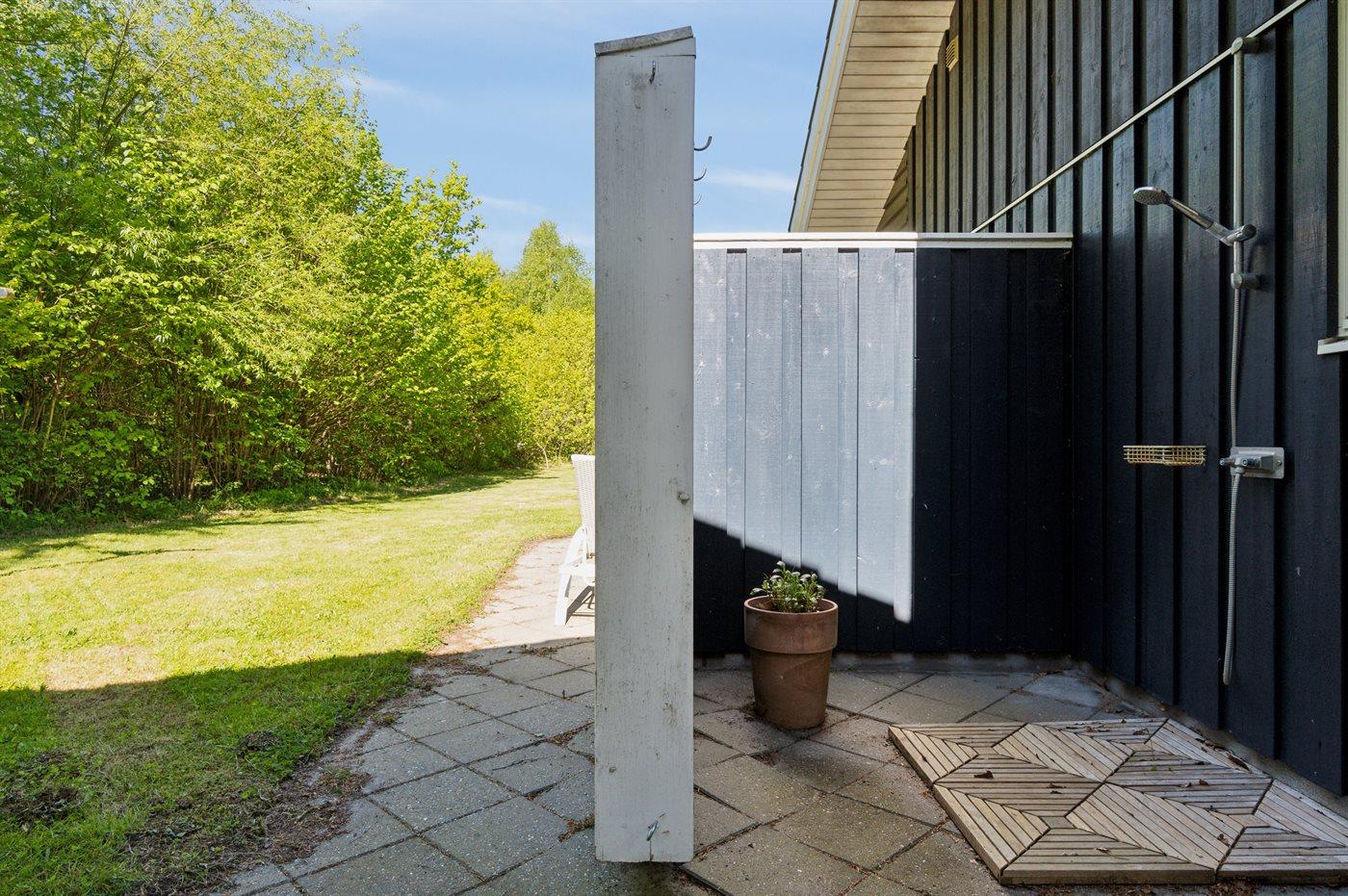Ferieboligen er beliggende på en 1986 m² stor havegrund. Der er 400 m til havet. Nærmeste forretning er beliggende i en afstand af 2500 m. Til ferieboligen hører åbent terrasseareal. Desuden er der overdækket terrasse. Der er redskabsrum. Udendørs bruser. Grill til rådighed. Parkering ved ferieboligen.