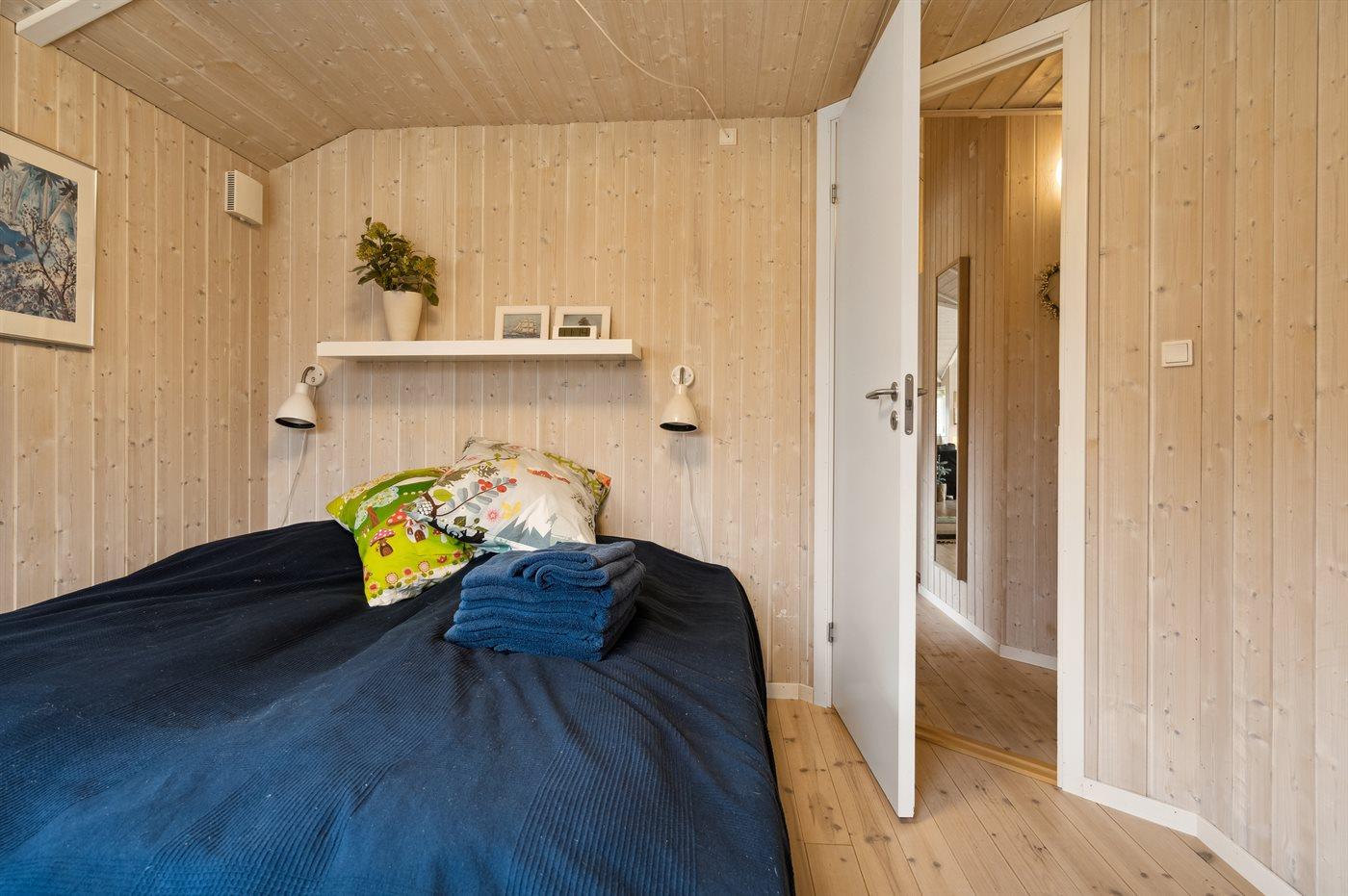 Der er i alt 5 soveværelser. Sovepladserne fordeler sig på: 6 sovepladser i dobbeltsenge. 4 sovepladser i køjesenge. 2 sovepladser på madrasser. 4 af disse sovepladser befinder sig i et anneks (fordelt på 2 soveværelser) og 2 af dem befinder sig på hemsen. Derudover er der 1 stk. barneseng.