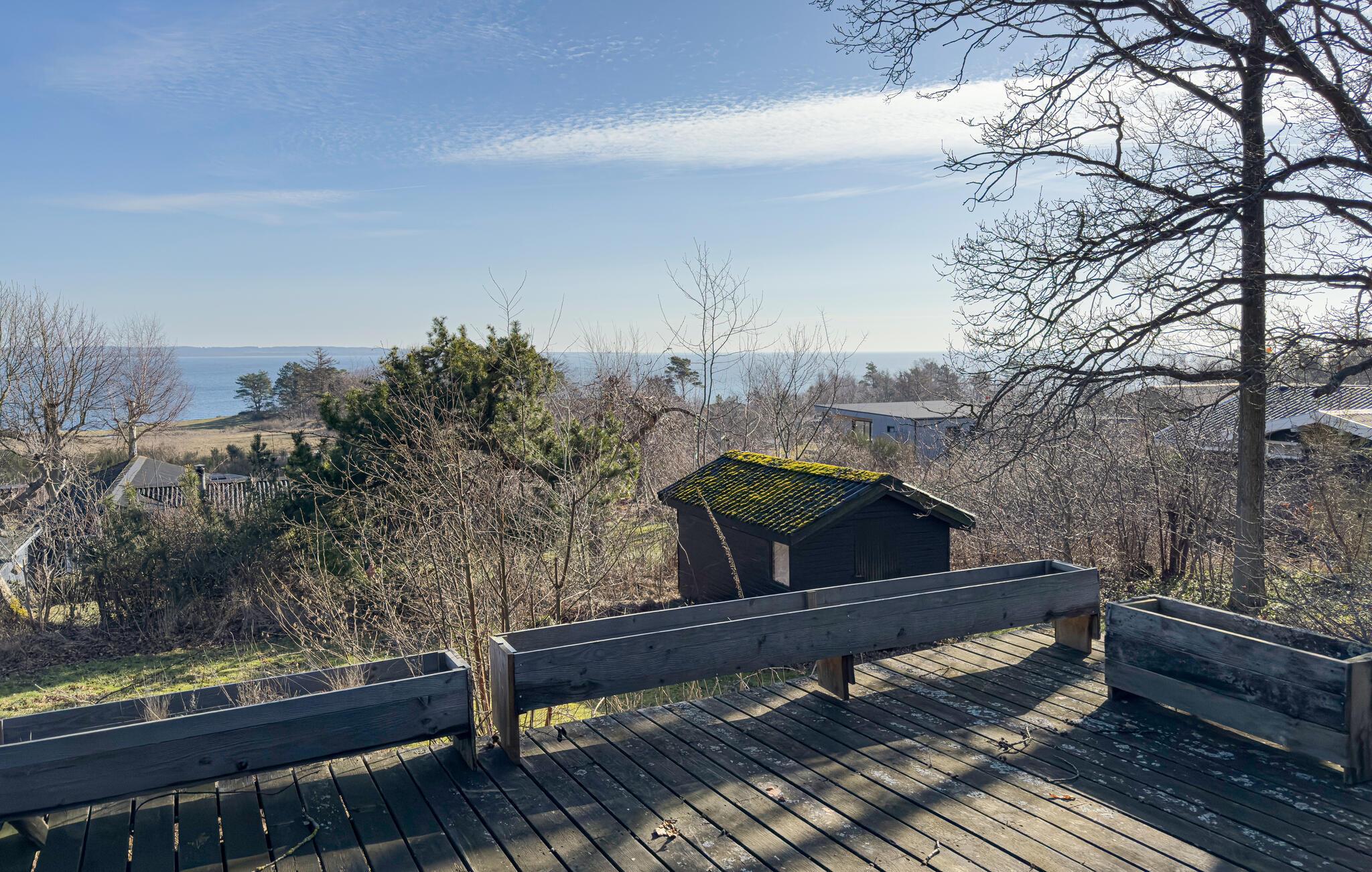 Træd ud på træterrassen, der strækker sig langs siden af ??huset. Dæk det store bord op til en middag under åben himmel og nyd den uhindrede udsigt over det bølgende landskab ned mod havet. Sæt jer i solskinnet og begynd dagene med en kop kaffe ved havebordet. Der er også en shelterhytte i den grønne have, som giver jer en unik mulighed for at overnatte i den friske luft.