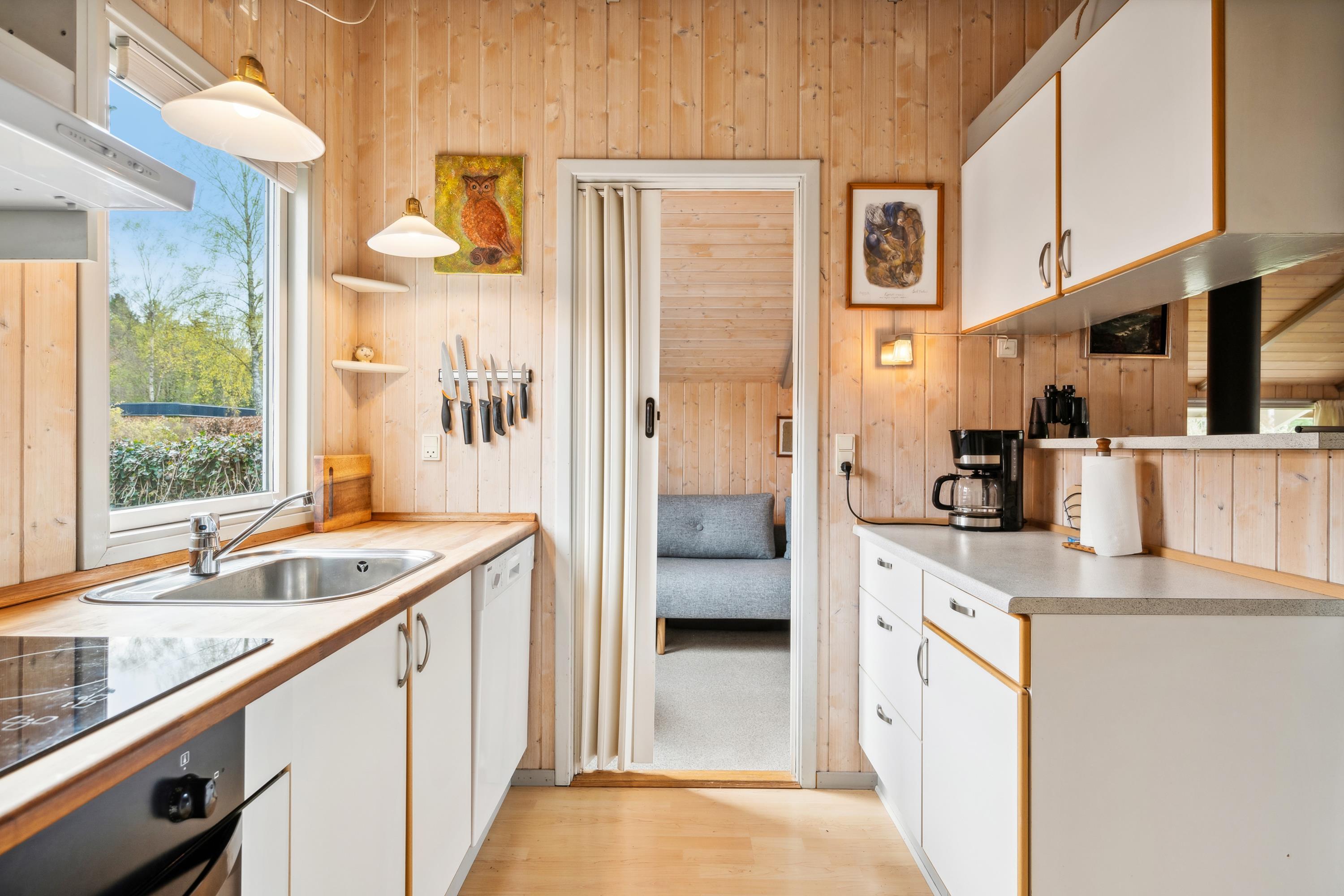 Ikke langt fra Ebeltoft finder man dette meget velholdte og hyggelige hus. Her finder man en virkelig hyggelig og velmøbleret stue, brændeovn og varmepumpe samt tv med både tyske og nordiske kanaler. Fra stuen er der udgang til en dejlig overdækket terrasse med havemøbler. God og velfungerende køkkenafdeling med b.la. opvaskemaskine. Husets sovepladser fordeler sig i to værelser, heraf et værelse med en dobbeltseng samt en værelse med en god dobbelt sovesofa. Dejligt badeværelse med bruseniche og gulvvarme. Huset er beliggende på en dejlig grund med flere terrassearealer. Der er en stor græsplæne, velegnet til leg og boldspil.