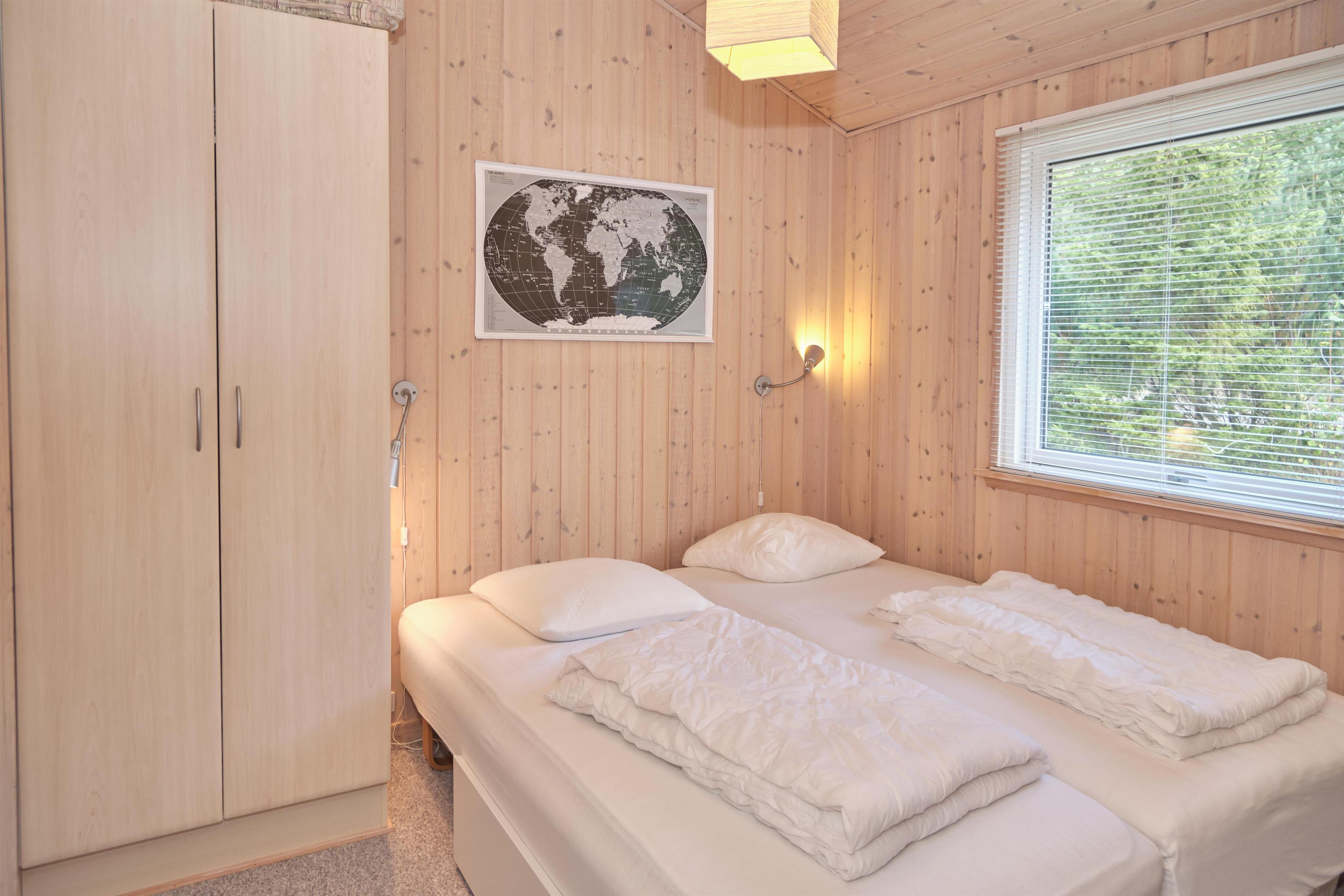 Huset fremstår overalt lyst og venligt med hvidpatinerede vægge og lofter til kip. Den velindrettede stue ligger i åben forbindelse med køkken og har brændeovn, god spiseplads til 7 personer, skønt sofahjørne, radio samt fladskærms-TV med chromecast – bemærk, at der ingen kanaler er tilkoblet, alt indhold skal streames fra PC eller andet medie. Godt, nyere køkken med komfur med keramiske kogeplader og ovn, køle-/fryseskab, opvaskemaskine og mikrobølgeovn. De 7 sovepladser fordeler sig på 2 store værelser med dobbeltseng og et lidt mindre værelse med dobbeltseng samt 1 enkeltseng/briks. Dejligt flisebadeværelse med gulvvarme, bruseniche, spabad og sauna samt vaskemaskine og tørretumbler. Der er internetadgang.