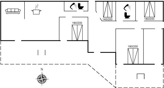 Der er i alt 4 soveværelser. Sovepladserne fordeler sig på: 8 sovepladser i dobbeltsenge. Derudover er der 1 stk. barneseng.