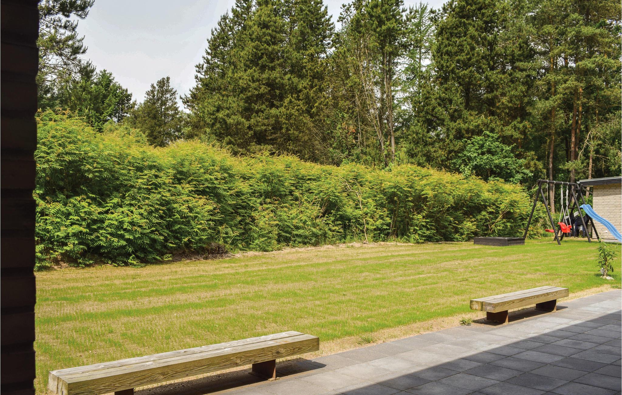 Et rigtig flot sommerhus beliggende på en dejlig grund, der omkranses af buske og træer. Huset er opført i en spændende byggestil, og har god plads til såvel en som to familier. Det er indrettet med 4 gode soveværelser med skabsplads og 2 dejlige badeværelser. Det veludstyrede køkken med kogeø gør det nemt for feriekokken at tilberede lækre måltider, og samtidig være med samtalerne ved spisebordet. I den skønne opholdsstue kan I slænge jer i sofaen foran tv'et og nyde varmen fra brændeovnen. Overalt i huset er der gulvvarme, der sikrer at der ikke bliver fodkoldt nogensteder. Fra både stuen og køkkenet er der udgang til den lækre, overdækkede terrasse med gode havemøbler og den hyggelige, murede pejs. På grunden er der flere legeredskaber og mulighed for aktiviteter.