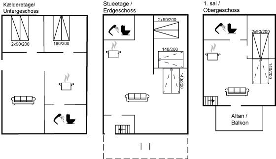 Der er i alt 4 soveværelser. Sovepladserne fordeler sig på: 2 sovepladser i dobbeltseng. 6 sovepladser i enkeltsenge. 6 sovepladser i sovesofa (enkelt). 6 af disse sovepladser befinder sig i stuen.