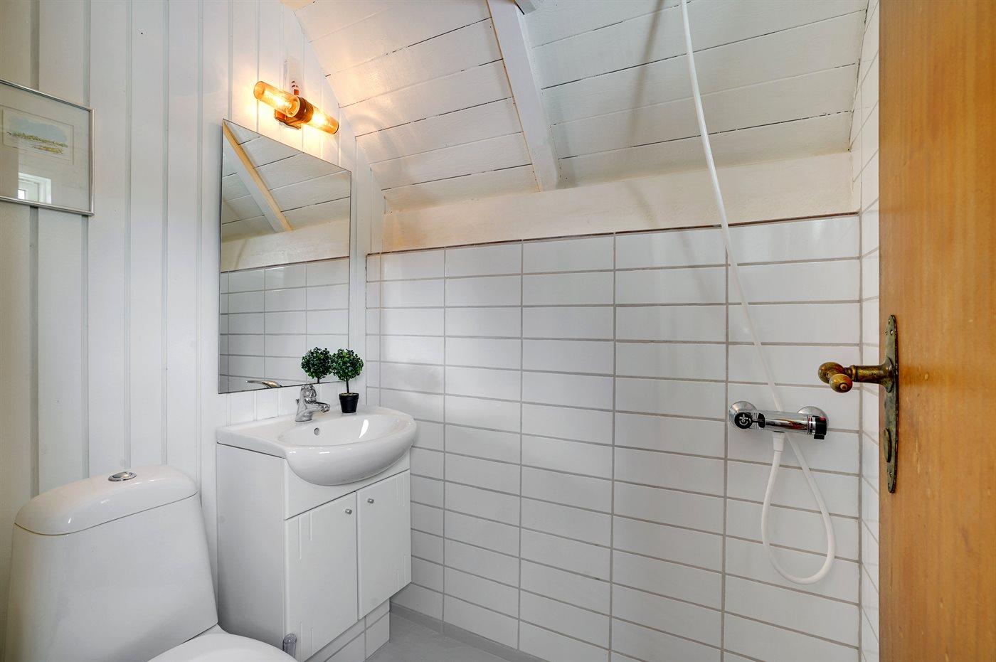 Der er 2 badeværelser med bruseniche og 2 toiletter. Der er gulvvarme på 1 badeværelse.