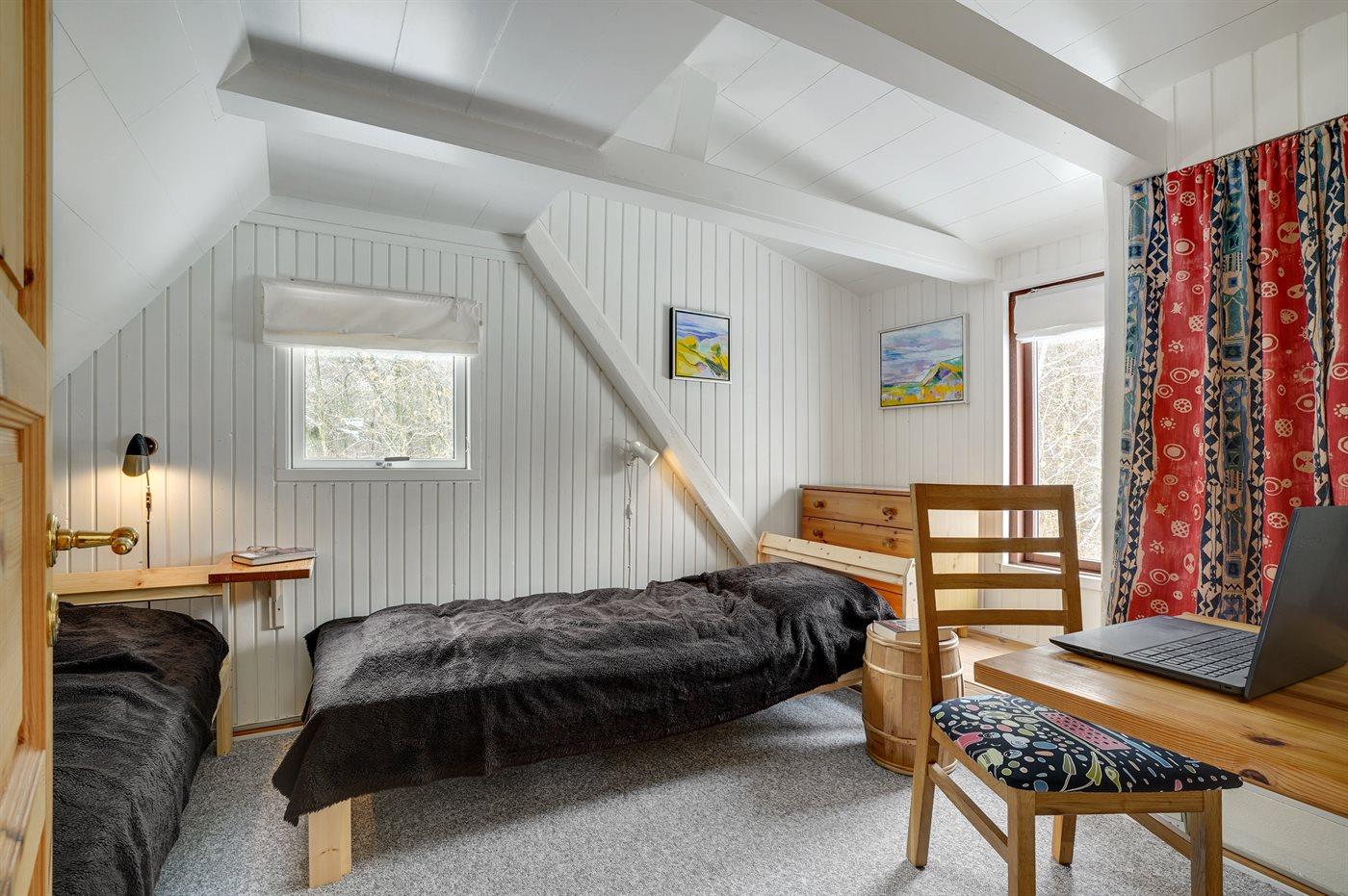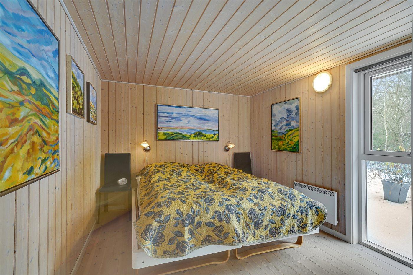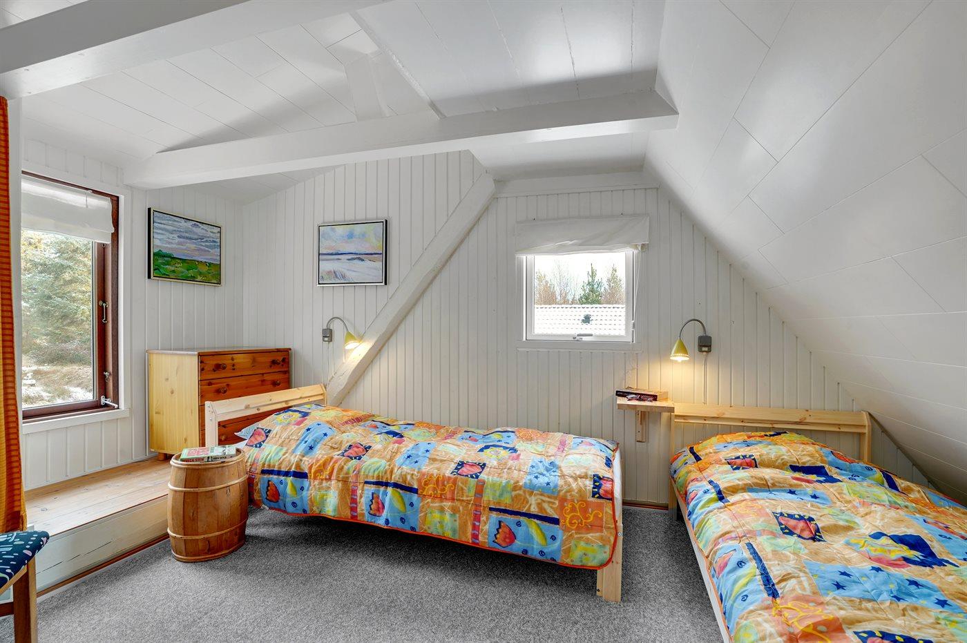 Der er i alt 4 soveværelser. Sovepladserne fordeler sig på: 8 sovepladser i enkeltsenge. 4 af disse sovepladser fordeler sig på 2 soveværelser i annekset. Derudover er der 1 stk. barneseng.