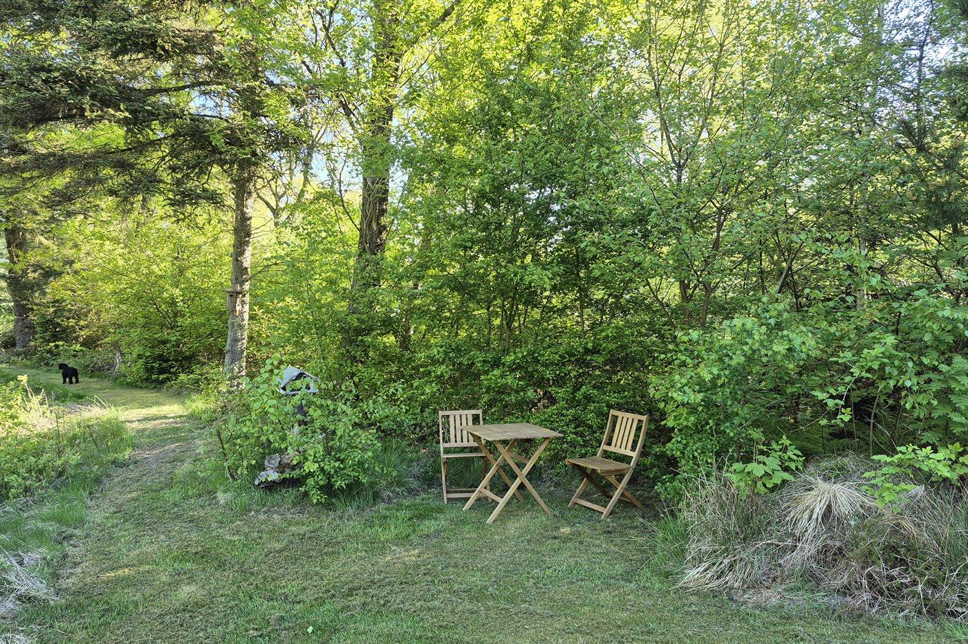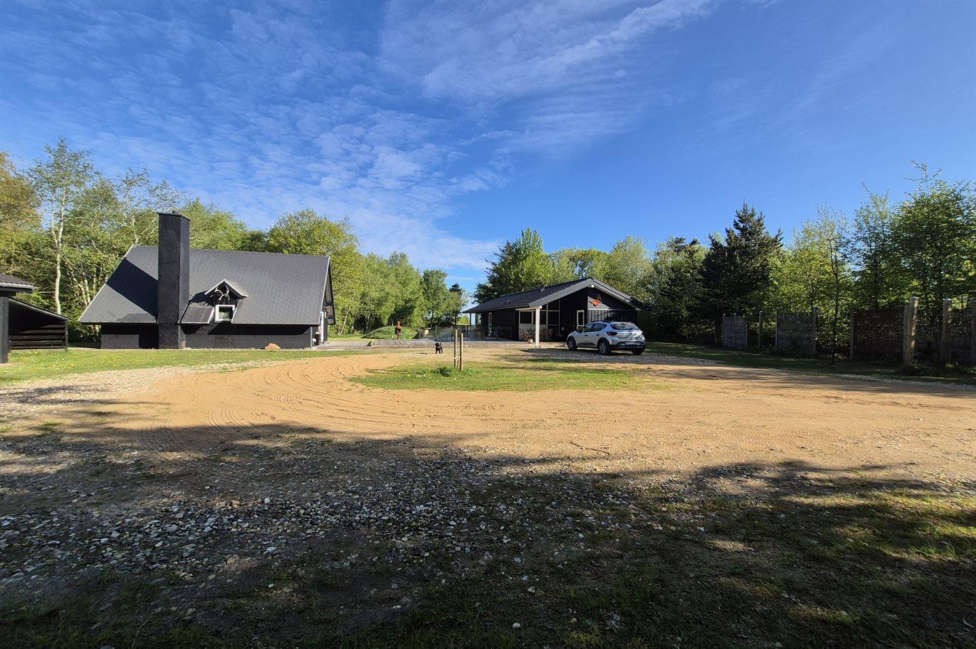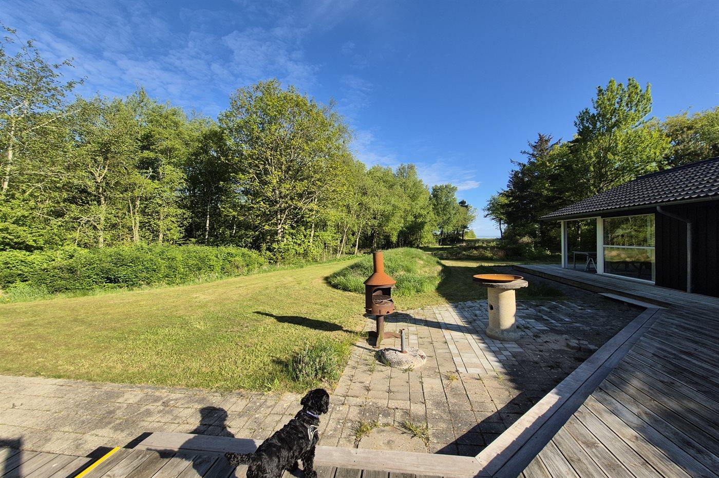 Ferieboligen er beliggende på en 9500 m² stor naturgrund. Der er 50 m til fjorden. Nærmeste forretning er beliggende i en afstand af 5000 m. Der er en golfbane i en afstand af 20000 m. Til ferieboligen hører 100 m² terrasseareal. Desuden er der 10 m² overdækket terrasse. Bålsted. Grill til rådighed. Der er installeret stik til opladning af elbil. Parkering ved ferieboligen.