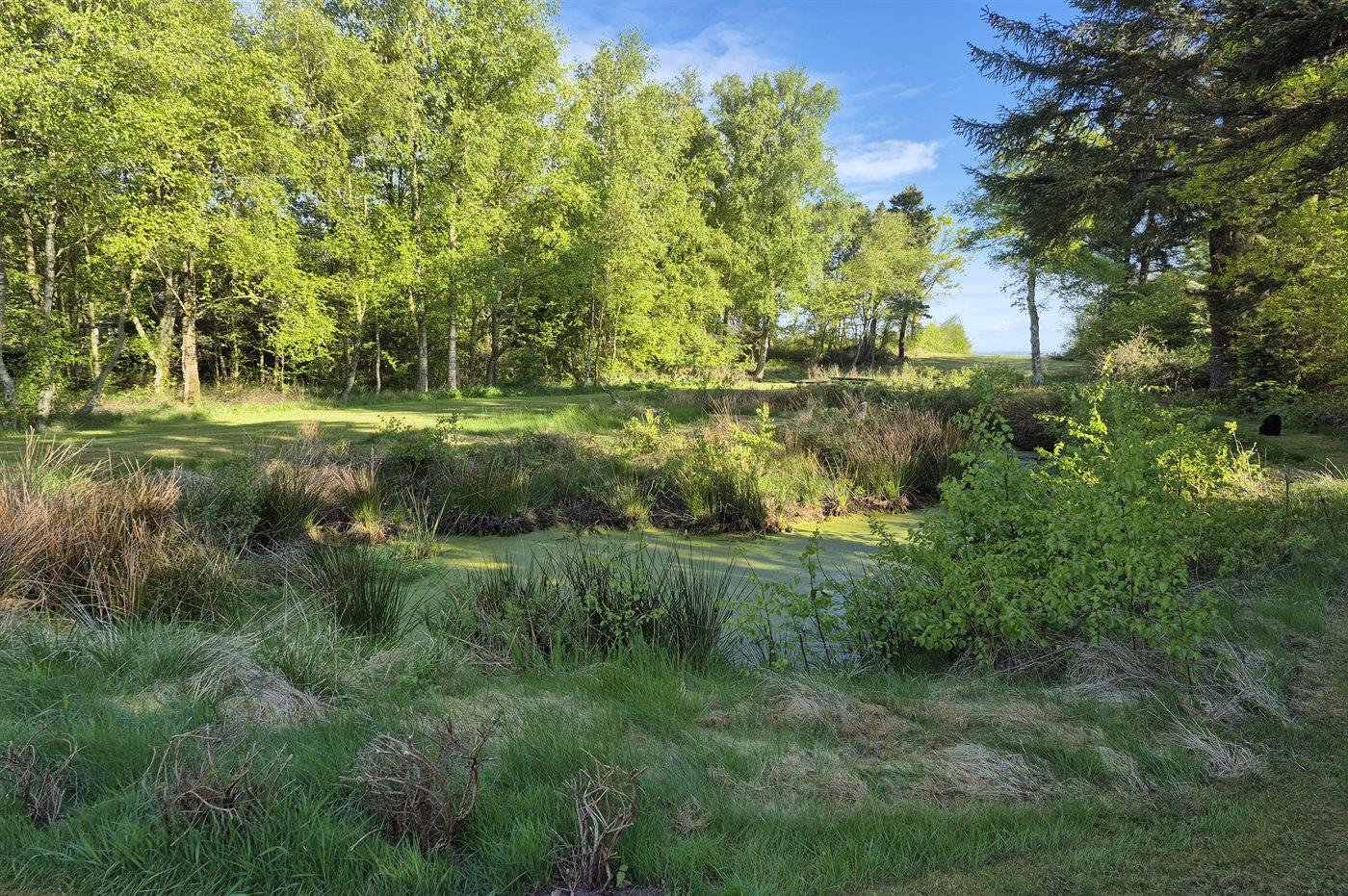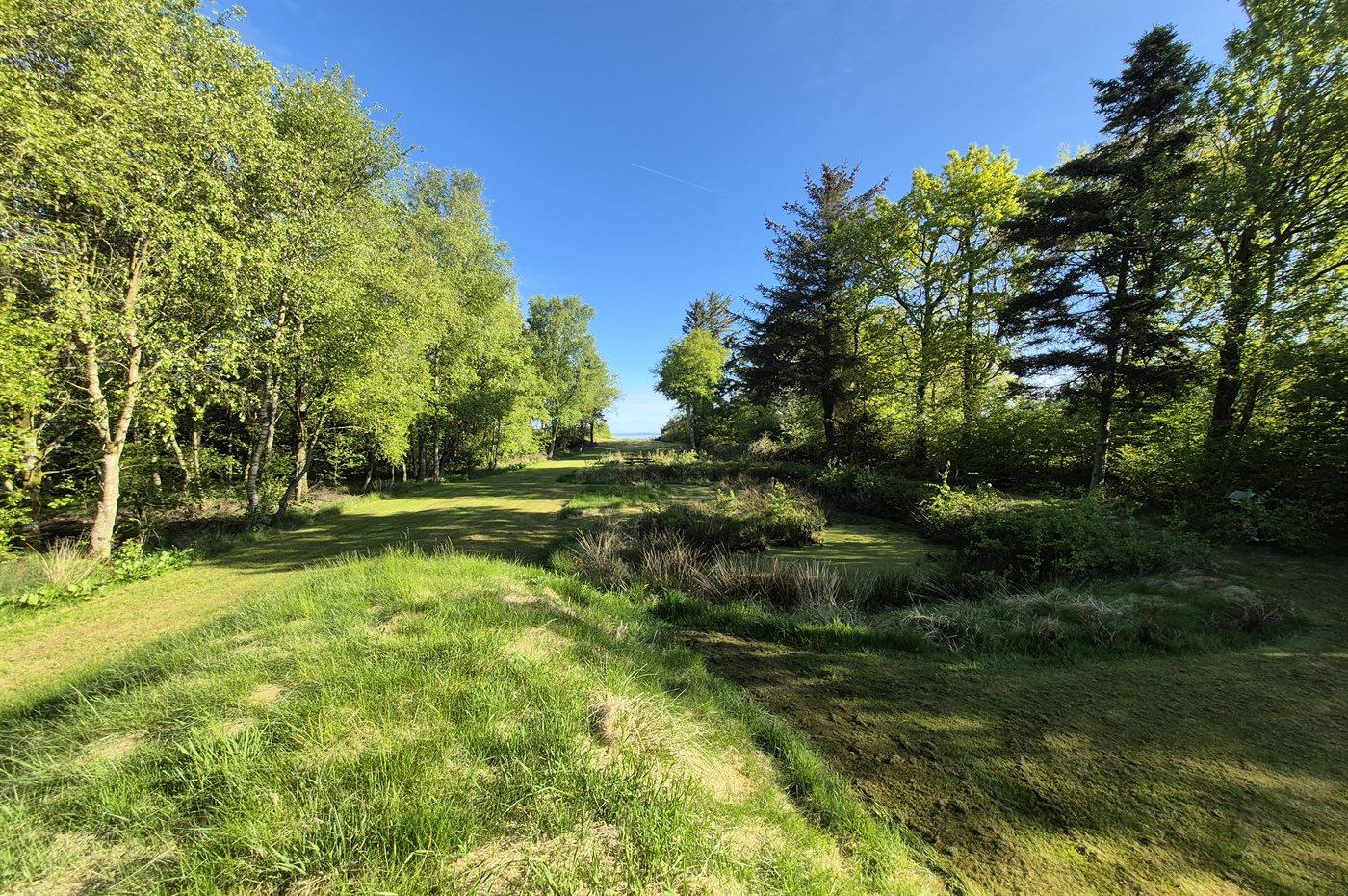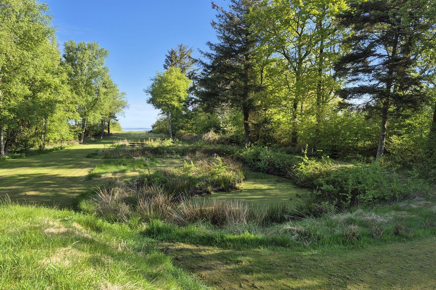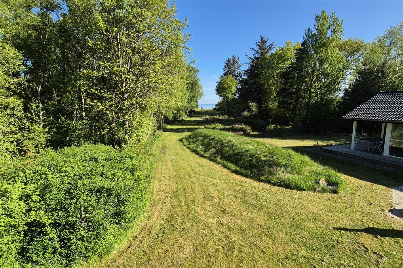 Unikt sommerhus på stor grund med direkte adgang til stranden og udsigt over fjorden.
