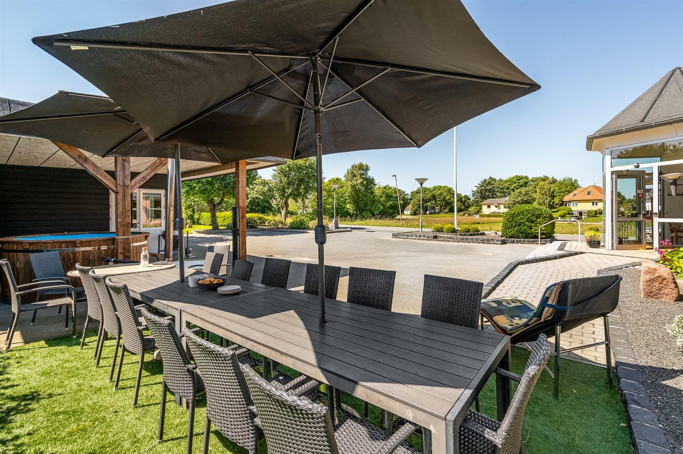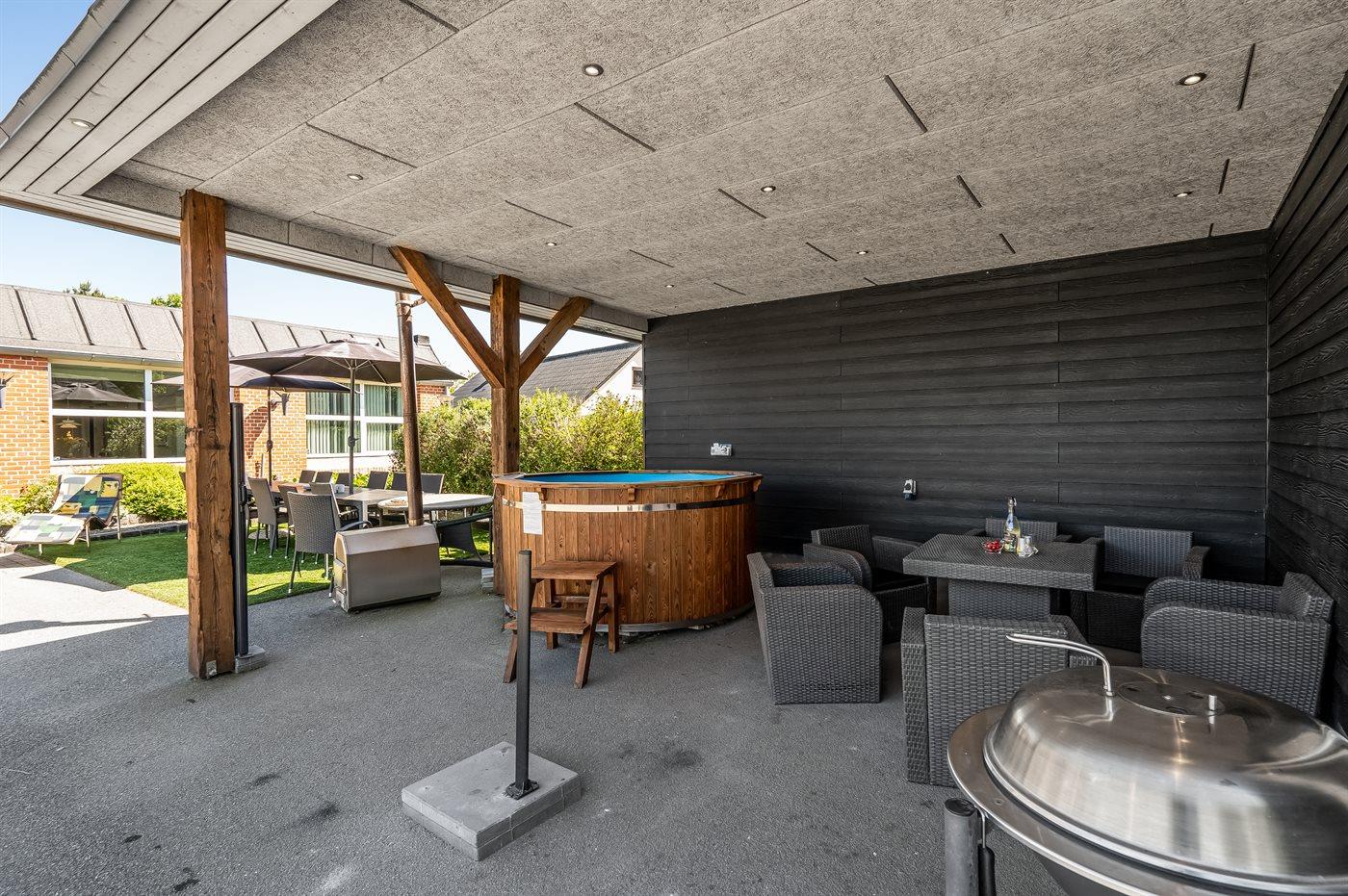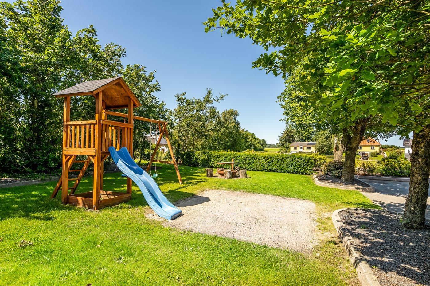 Til ferieboligen hører åben og overdækket terrasse med vildmarkskar. Til børnene er der gynge, sandkasse, legetårn, rutsjebane og fodboldbane. Der er bålsted og kulgrill til rådighed. Parkering ved ferieboligen og 50m til en ladestander.