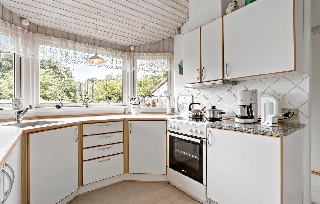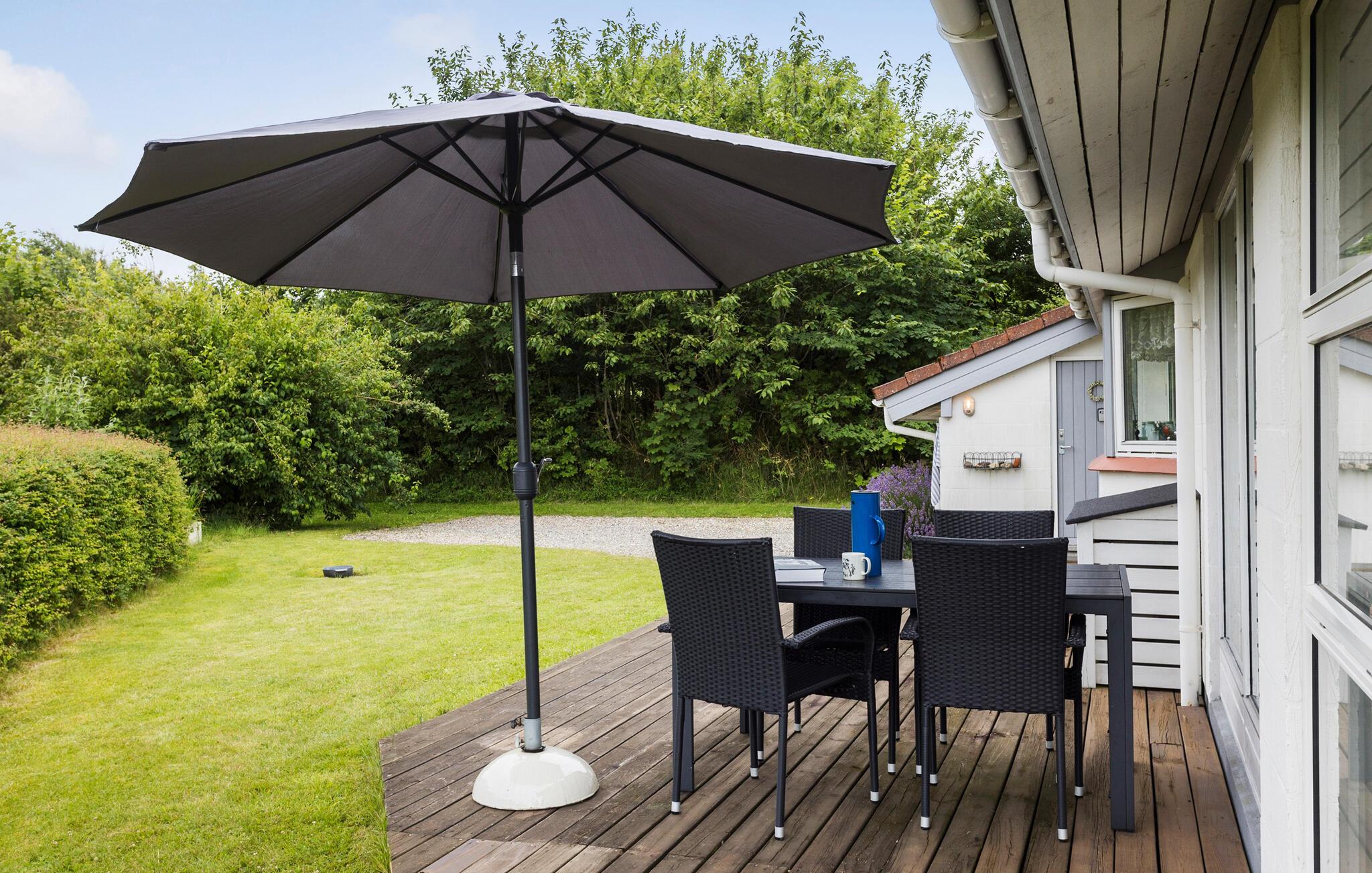 Dette charmerende sommerhus lægger op til en afslappende ferie med hele familien. Den komfortable bolig udstråler en varm og hjemlig stemning. Slå jer ned i den bløde hjørnesofa og sæt en god film på tv’et. Eller I kan begynde dagen med en lækker morgenmad og nyde den enten indendørs eller ude på træterrassen. Om aftenen kan I finde brætspillene frem og samles om spisebordet. Hvis vejret viser sig fra sin gode side, kan I tænde op i grillen, mens I nyder den friske luft.