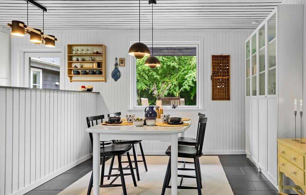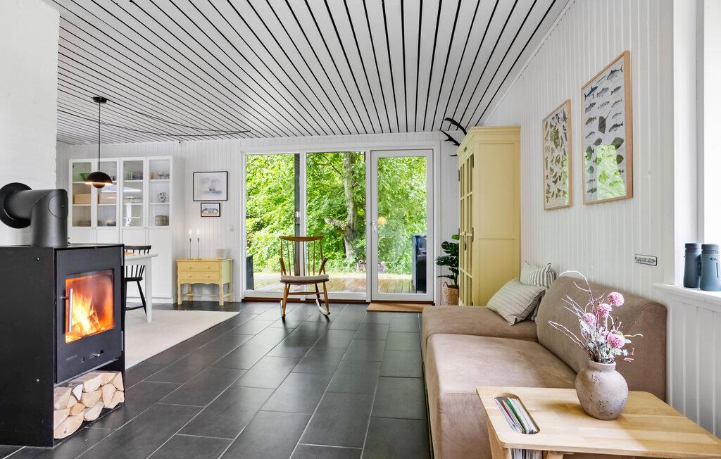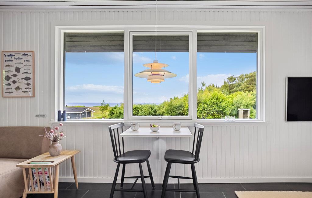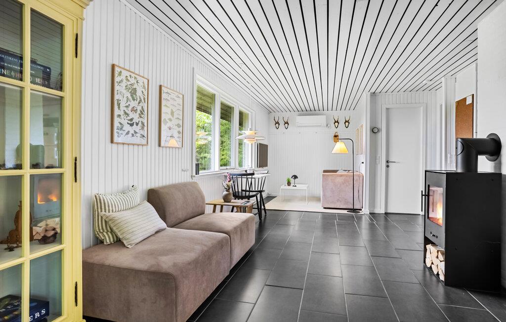 Velkommen til dette rummelige og lyse feriehus, hvor I kan nyde en smuk udsigt over haven og den nærliggende fjord, mens I spiser. Tænd op i brændeovnen og glæd jer til hyggelige samtaler, sjove brætspilsaftener eller afslappende stunder med en god film i sofaen.