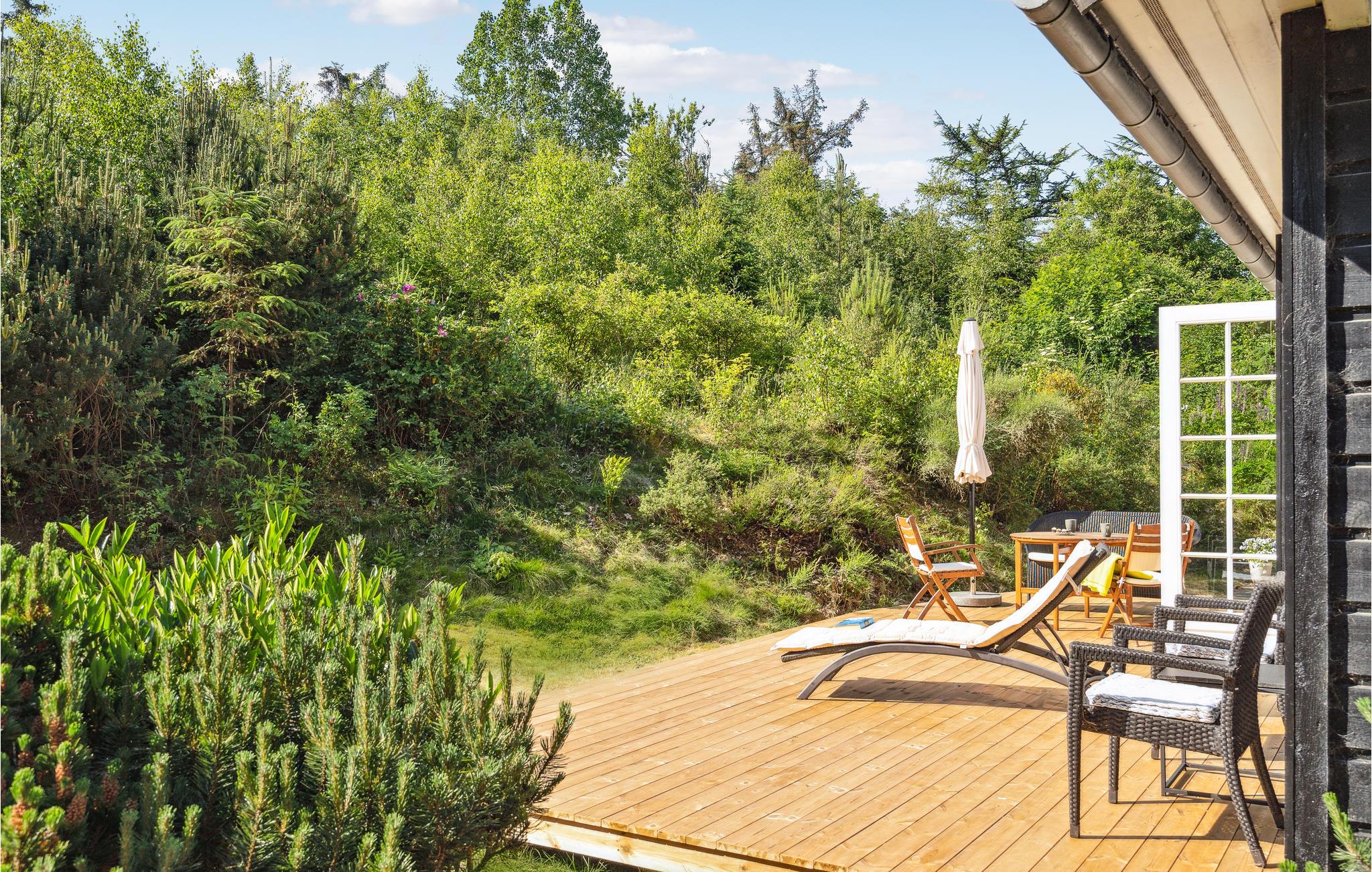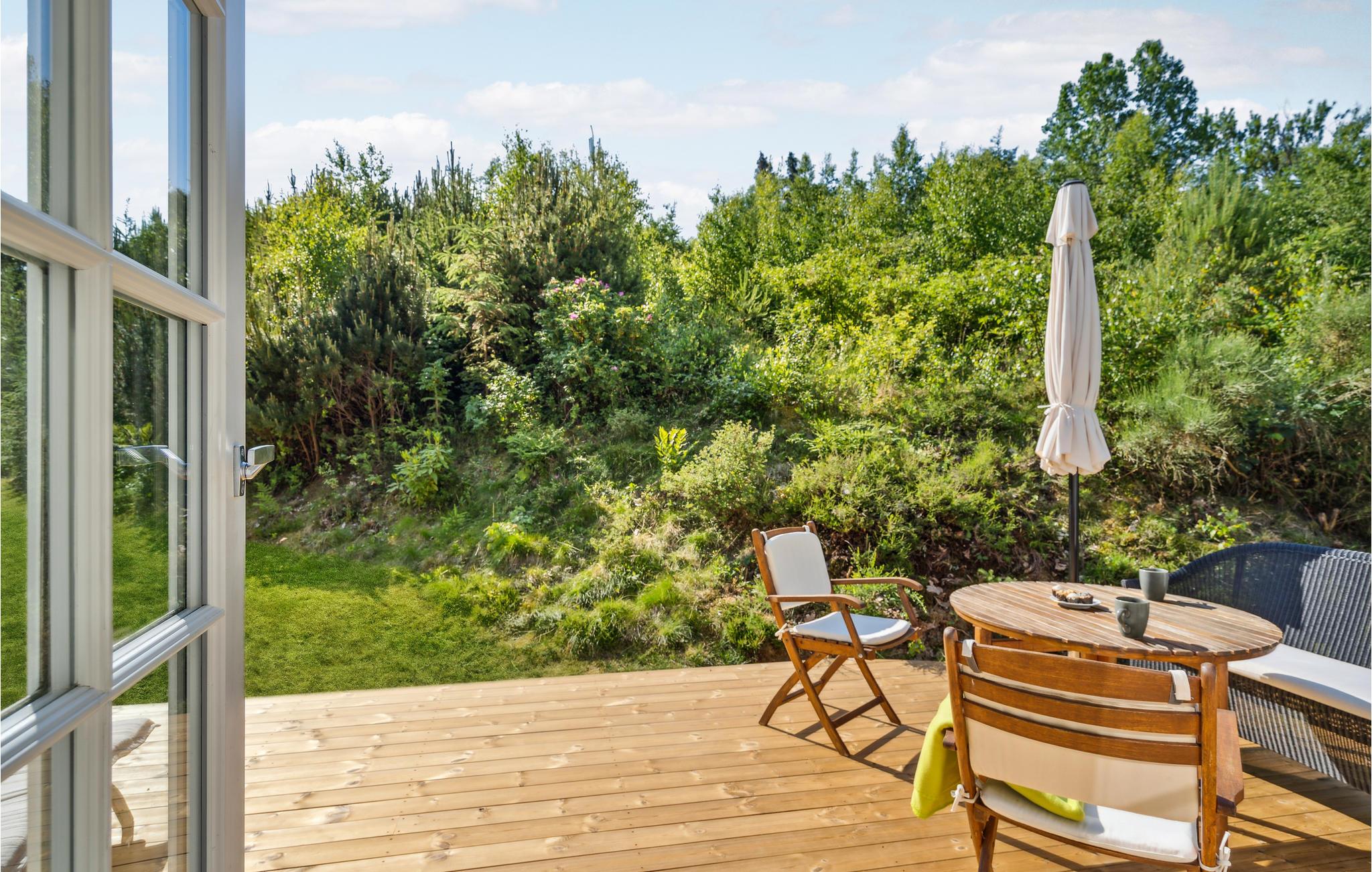 Fra foråret kan I rykke ud på terrassen og læne jer tilbage med lukkede øjne, mens I lytter til naturens beroligende lyde. Hvis I trænger til at bevæge jer, kan I tage en runde badminton eller vikingespil med børnene.