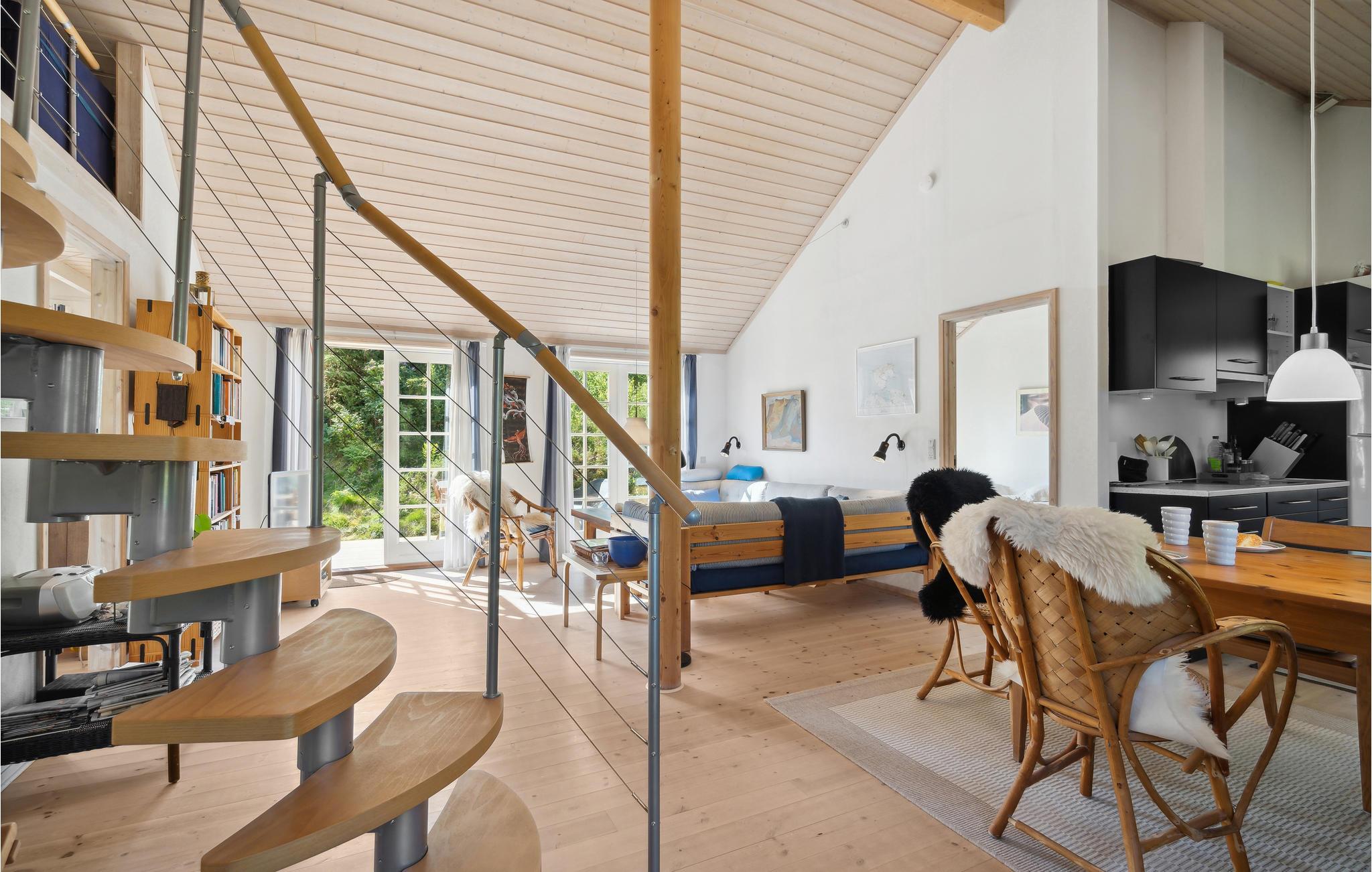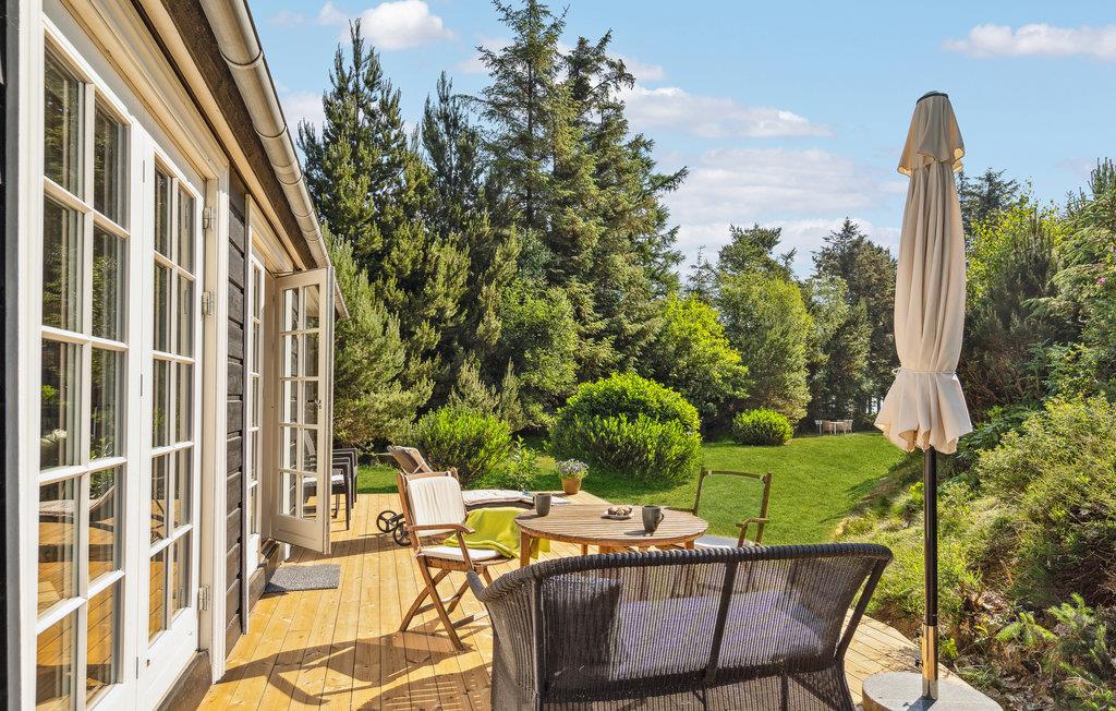 Velkommen til denne fredfyldte grund, som har en helt enestående beliggenhed på limfjordsøen Fur, blot 100 meter fra vandet. Midt på den skovklædte grund ligger dette elegante sommerhus, som kan blive jeres base i nogle feriedage, hvor I kan komme helt ned i tempo. Huset er indrettet med flotte kvalitetsløsninger og mange hyggekroge, så I kan se frem til gode timer, hvor alle hygger sig med fælles aktiviteter eller en lille alenestund. Tænd op i brændovnen på de kølige aftener og find sammen om brætspil. køkkenet har en dejlig udsigt til de grønne omgivelser, som I kan nyde, mens I står og laver mad.