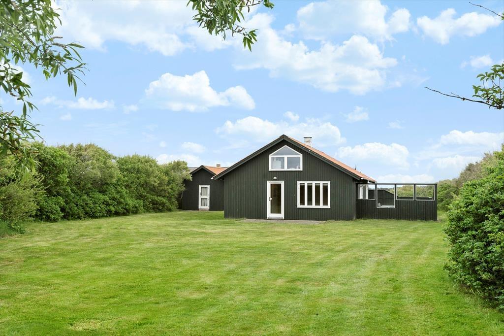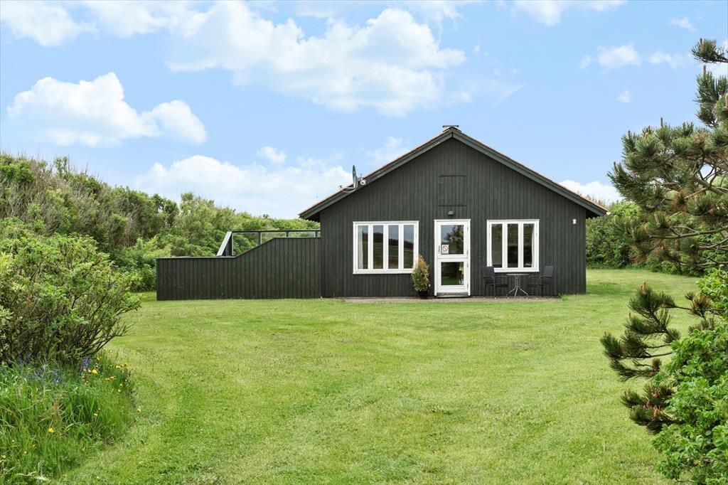 Sommerhuset ligger på en stor naturgrund, hvor der er masser af plads til leg, spil og afslapning. De flere terrasser rundt om huset giver mulighed for at nyde solen, slappe af i skygge eller samles til hyggelige grillmiddage med familien. Her er roligt og fredeligt, og du kan nyde lyden af fugle i baggrunden eller simpelthen lytte til naturens stille rytme. Området er perfekt til at slappe af i en liggestol med en bog eller tage en spontan picnic i det grønne. Med den kort afstand til Vesterhavet er det også en mulighed at tage en hurtig tur til stranden og mærke sandet mellem tæerne, mens bølgerne bruser i det fjerne.