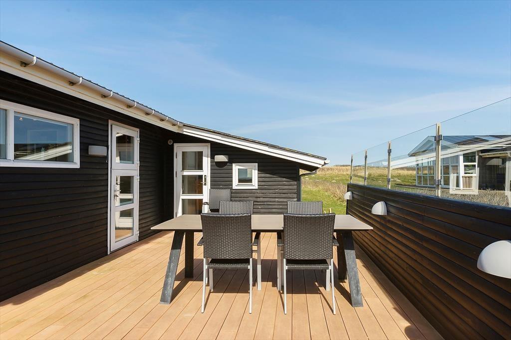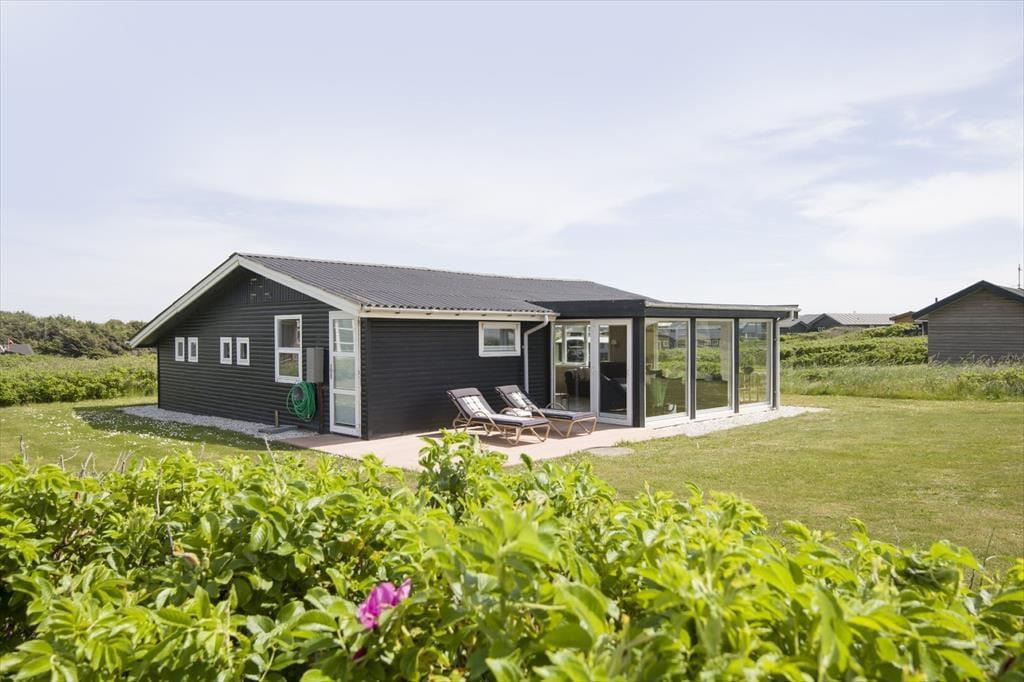 Det føles virkelig eksklusivt at holde ferie lige ud til kysten. Hvis I tilbringer dagen på den vestvendte terrasse, danner Vesterhavet det smukkeste bagtæppe for driverlivet, og mellem hybenbuskene ved kanten af grunden står en bænk, som er det ideelle sted at opleve solnedgangen. Det er nu også dejligt at sidde på østsiden af sommerhuset, hvor en afskærmet terrasse er placeret – og hvis I slet ikke vil sidde, men løbe og lege, er der god plads til fysiske udfoldelser på grundens græsplæne.