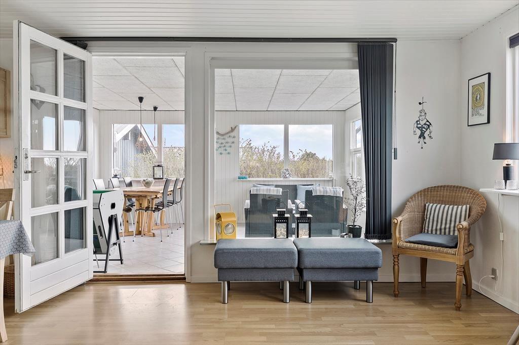 I får god plads at brede jer på i dette lyse og velindrettede sommerhus, som ligger godt placeret på en stor, solrig grund med både gårdhave og skønne terrasser. Fra huset er der få hundrede meter til Vesterhavet, og I kan køre til den hyggelige ferieby Løkken på under fem minutter.