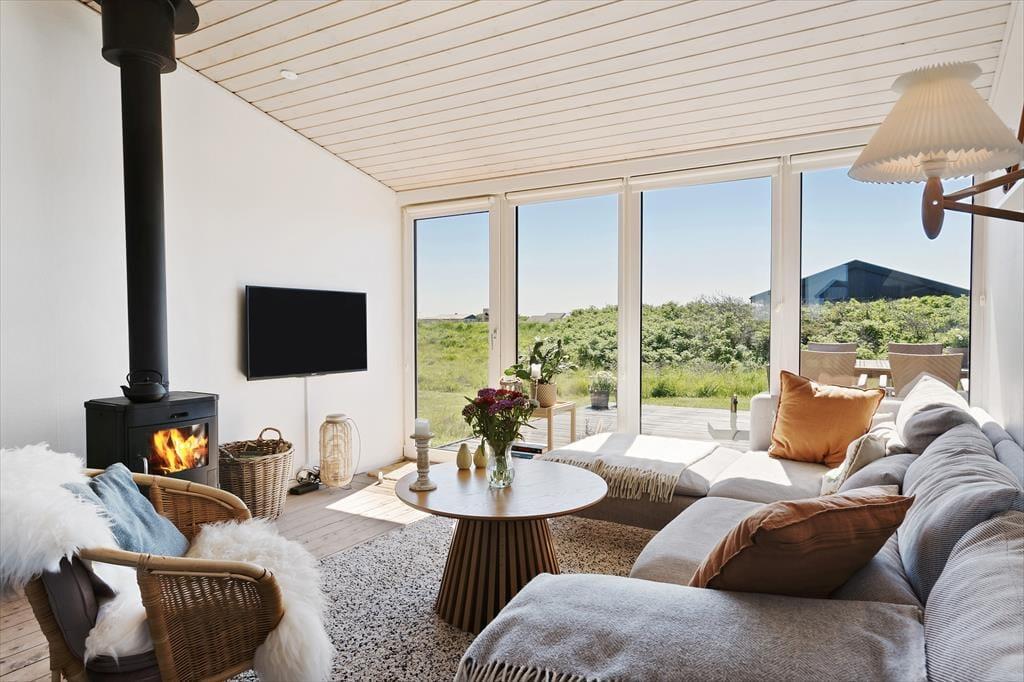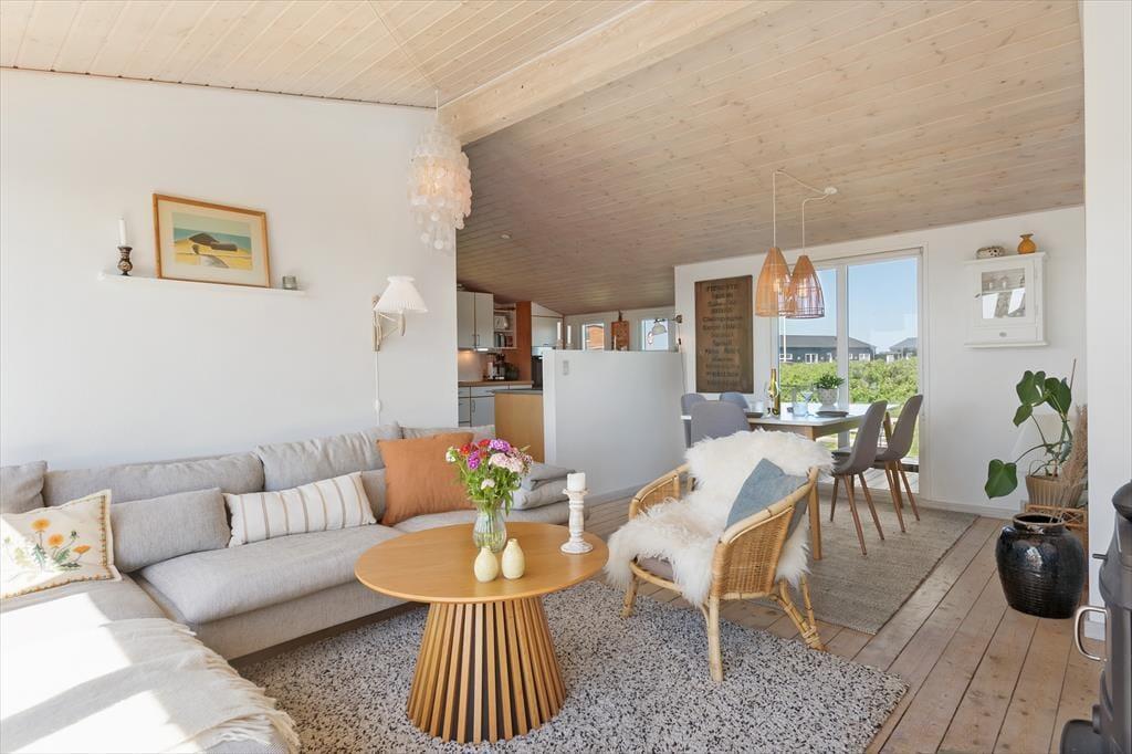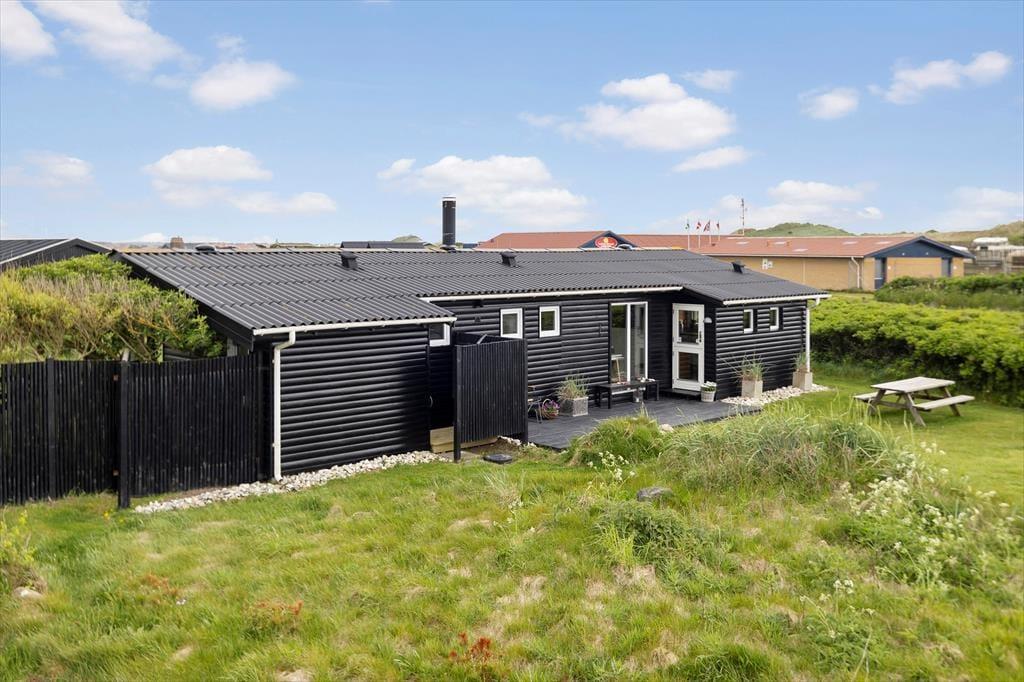 Nyd det afslappende ferieliv i dette lyse og velindrettede sommerhus, der ligger på en stor solrig grund med skønne terrasser – tæt på Vesterhavets brusende bølger og blot en kort køretur fra den hyggelige ferieby Løkken.