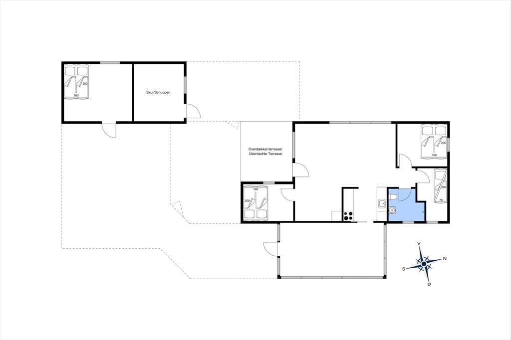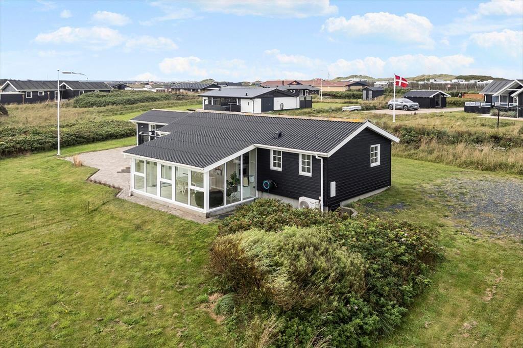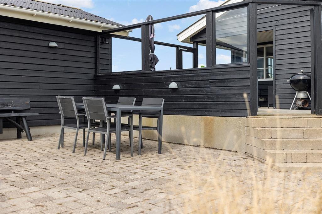 Her er rammerne til en ferie, hvor udelivet virkelig kan nydes. På terrassen kan I samles om grillmiddage eller slappe af i havemøblerne, og den praktiske læmur skaber en hyggelig oase, hvor I kan sidde uforstyrret, selv når vestenvinden rusker. Haven giver plads til leg og boldspil for familiens yngste, mens de voksne kan nyde solens varme stråler eller en kølig drink i skyggen. Når aftenen falder på, er det oplagt at trække ind i udestuen igen og nyde roen, mens mørket sænker sig over landskabet.