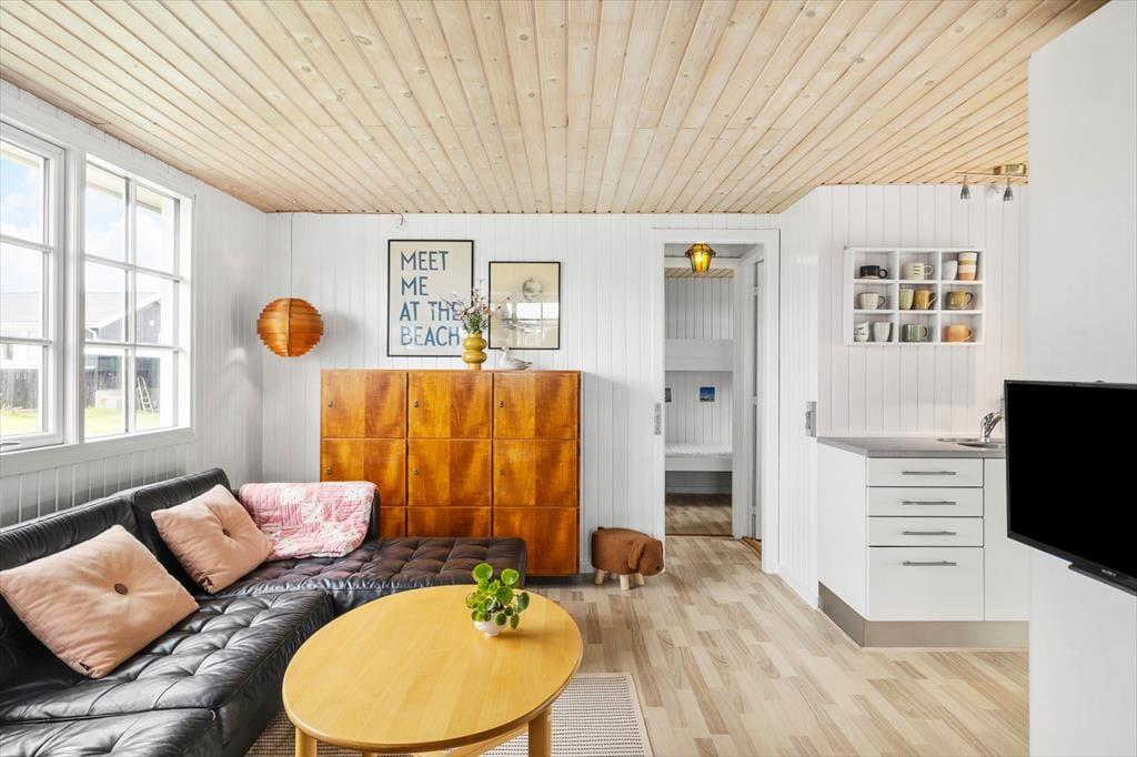 Sommerhuset er indrettet i en lys og venlig stil, der indbyder til ro og hygge, fra det øjeblik du træder indenfor. I stuen er der plads til samvær, hvor I kan slappe af med brætspil eller blot nyde hinandens selskab. Husets store udestue er et særligt plus – her kan du sidde i læ, nyde udsigten over det åbne landskab og følge dagens skiftende lys, mens du drikker en kop kaffe eller læser en bog. I det rummelige anneks er der ekstra sovepladser, hvilket gør huset velegnet til både familier og vennepar, der ønsker at holde ferie sammen. Hele huset udstråler en varm og hjemlig atmosfære, der gør det let at falde til ro og nyde ferielivet i Furreby.