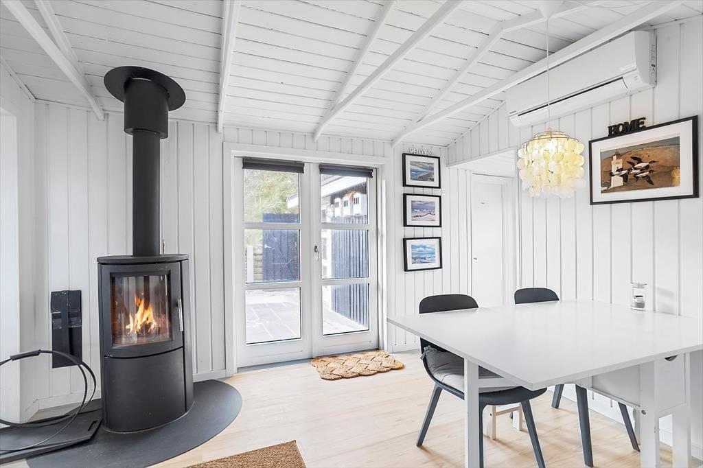 Sommerhus i Furreby, Nordjylland, med plads til 4 voksne, 2 børn og 2 husdyr. Der er en hyggelig indretning med bl.a. brændeovn, og du finder desuden opvaskemaskine i boligen.