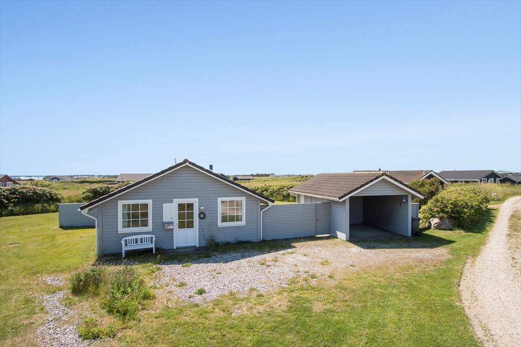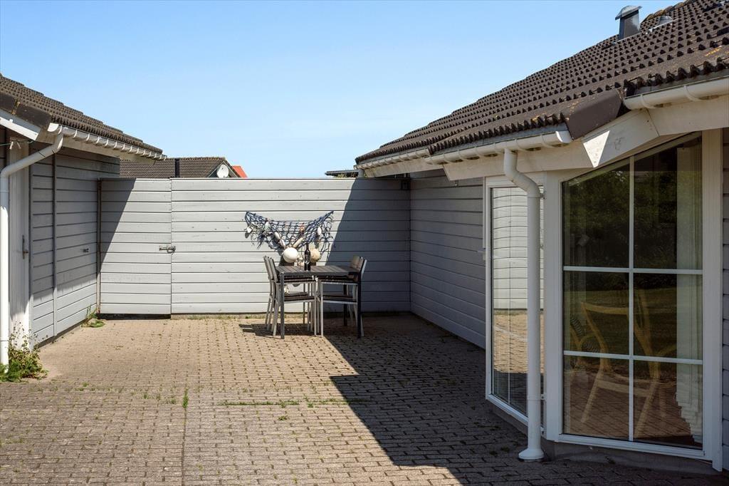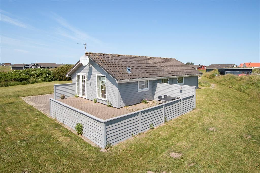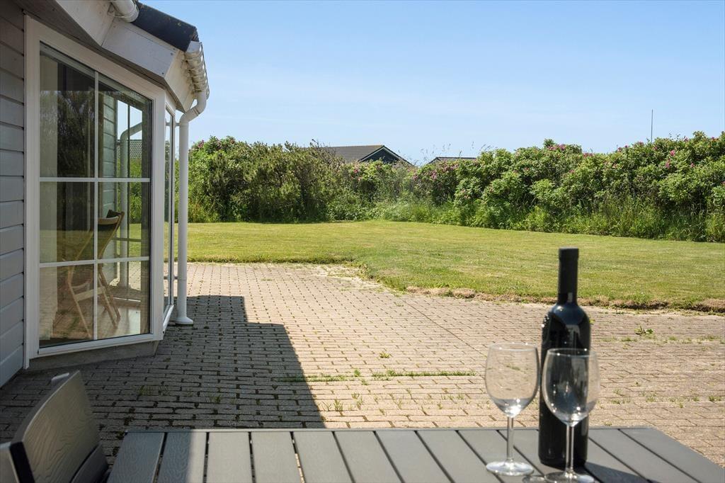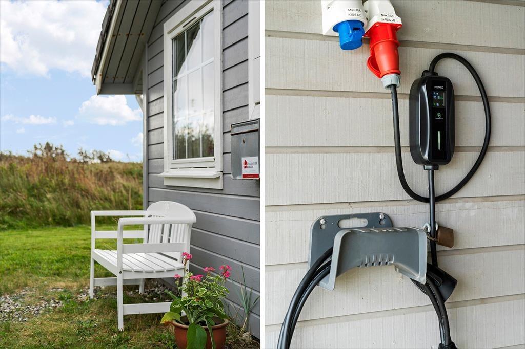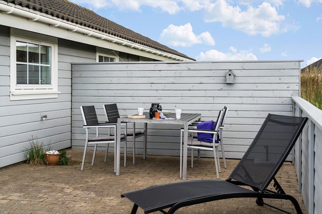 Rundt om huset er der anlagt en dejlig stor terrasse, hvor der mod sydøst er opsat læhegn, så morgenkaffen kan nydes i solen og med læ for vinden. På naturgrunden er der masser af plads til at lege og spille bold, så i alt absolut gode betingelser for at nyde den danske sommer i fulde drag med solbadning, grillmåltider og familiehygge. Der er havemøbler, liggestole og grill til rådighed i huset. Derudover er der mulighed for at oplade el-bil ved huset.