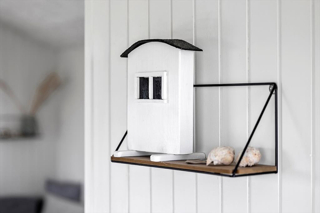 Det er ikke lige til at se udefra, men faktisk er dette hus opdelt i tre niveauer: I stueplan ligger køkken og stue i åben forbindelse, og et soveværelse med dobbeltseng samt et badeværelse. Flere kvadratmeter finder I, hvis I tager trappen ned til kælderen, hvor både spabadet og saunaen er placeret. I trapperummet står der på praktisk vis en vaskemaskine. Endelig har I adgang til en hems fra køkkenet, og her ligger en madras, som kan bruges til både overnatning og afslapningsstunder. Størstedelen af tiden kommer I formentlig til at hygge jer i stueetagen, som er lyst og stilfuldt indrettet med moderne møblement og en brændeovn – og så er det netop også herfra, at udsigten er helt forrygende.