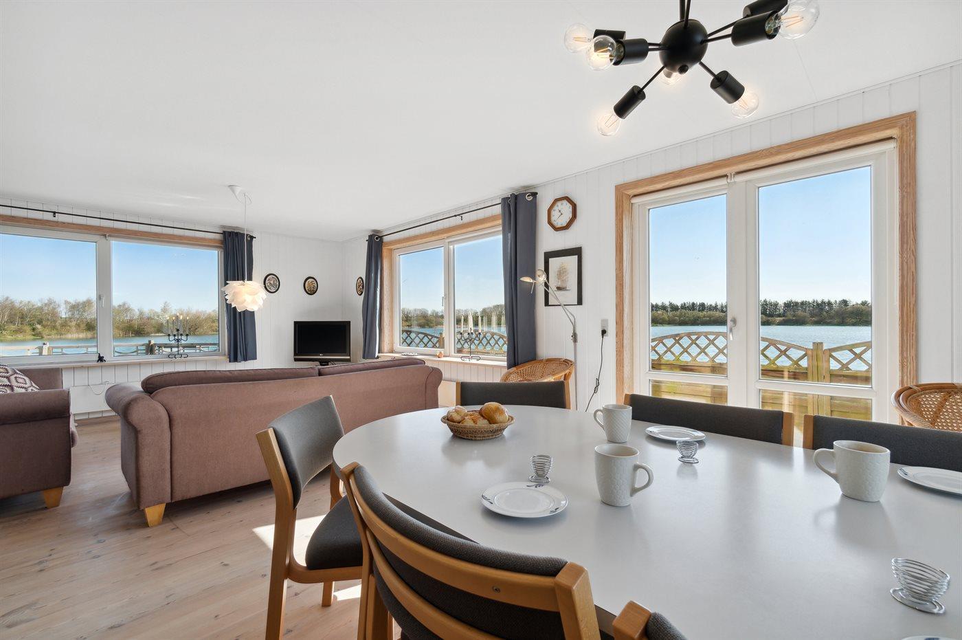 Dejligt, stort sommerhus med en helt utrolig beliggenhed helt ned til Danmarks vel nok største Put & Take sø. Et rent eldorado for lystfiskere samt dem, som ønsker at tilbringe deres ferie i smuk natur. Fra den store opholdsstue er der fantastisk panoramaudsigt over søen. Bemærk: 2 enkeltsenge befinder sig i et gennemgangsværelse samt 2 sovepladser på dobbelt sovesofa i opholdsstuen.