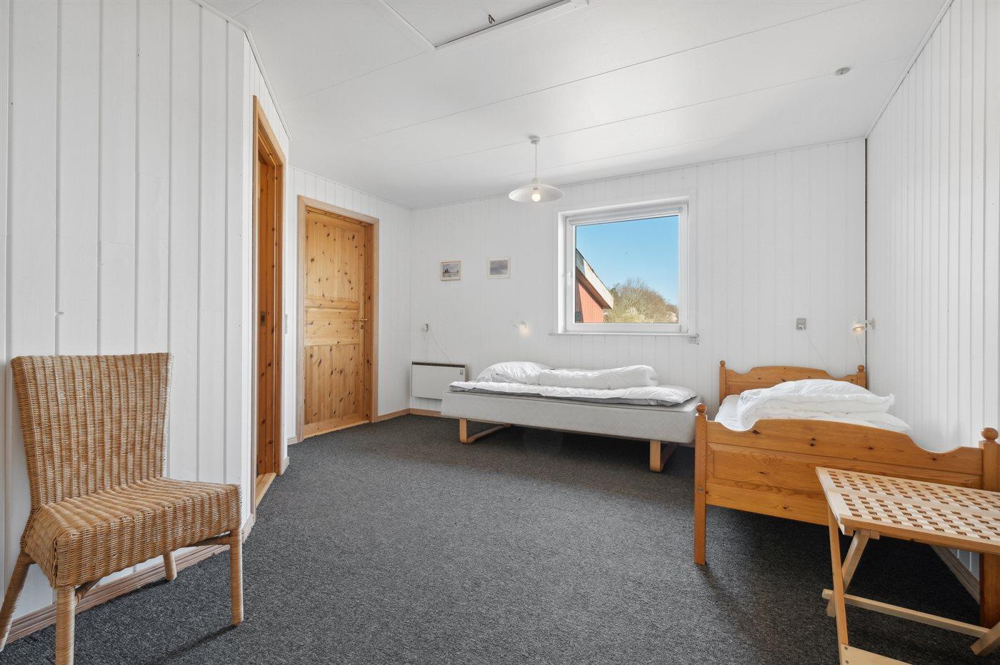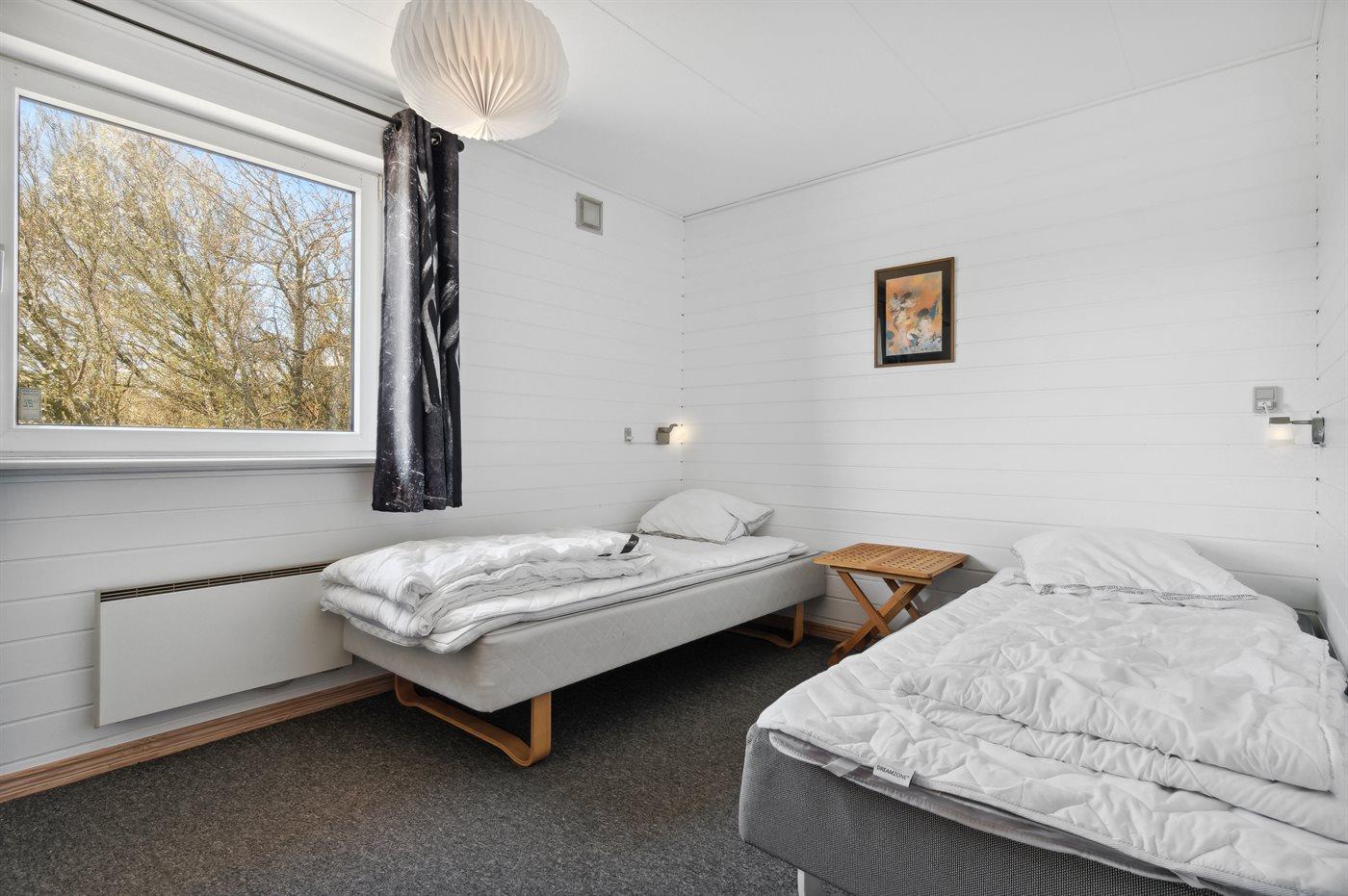 Der er i alt 3 soveværelser. Sovepladserne fordeler sig på: 2 sovepladser i dobbeltseng. 4 sovepladser i enkeltsenge. 2 sovepladser i sovesofa (dobbelt). Derudover er der 1 stk. barneseng.