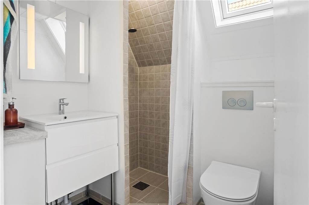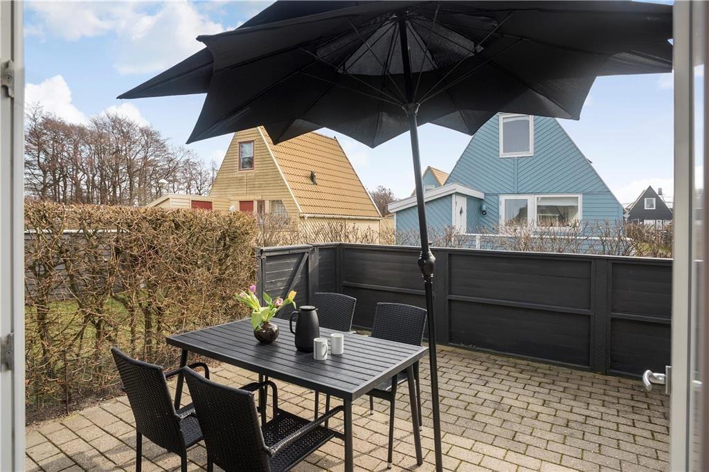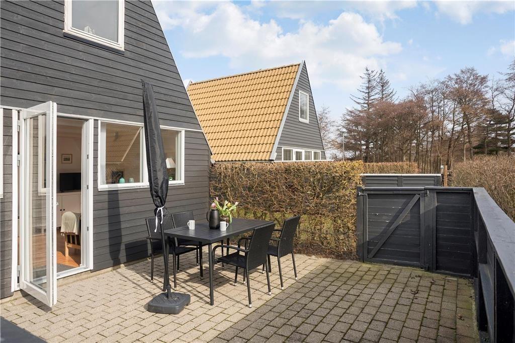 Udendørsarealet omfatter den flotte lukkede terrasse, samt et fællesareal med bålplads, en tennisbane, legeplads med gynger, legehus og vipper. Derudover findes et fælleshus med vaskemaskine og tørretumbler.