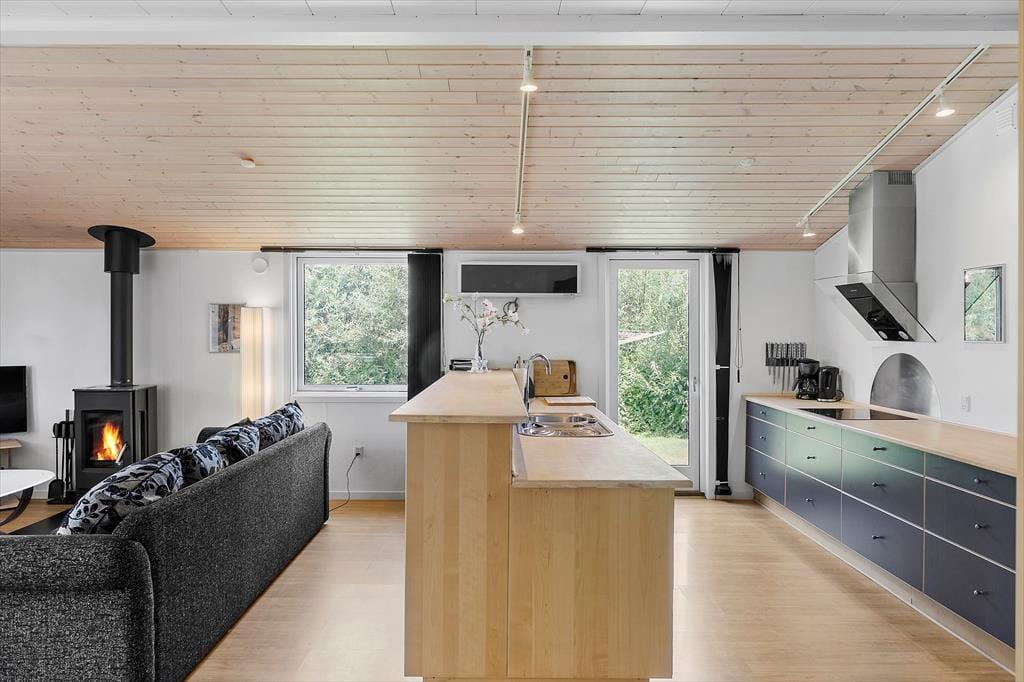 Fritidshuset som er velisoleret og byder bl.a. på stor opholdsstue med lofter til kip, brændeovn og udgang til skøn sydvendt terrasse, hvor udsigten over haven kan nydes. Åbent køkken-alrum, 2 gode badeværelser det ene med spa og brusekabine, det andet med bruseniche. 3 store soveværelser og direkte adgang fra huset til stor garage.