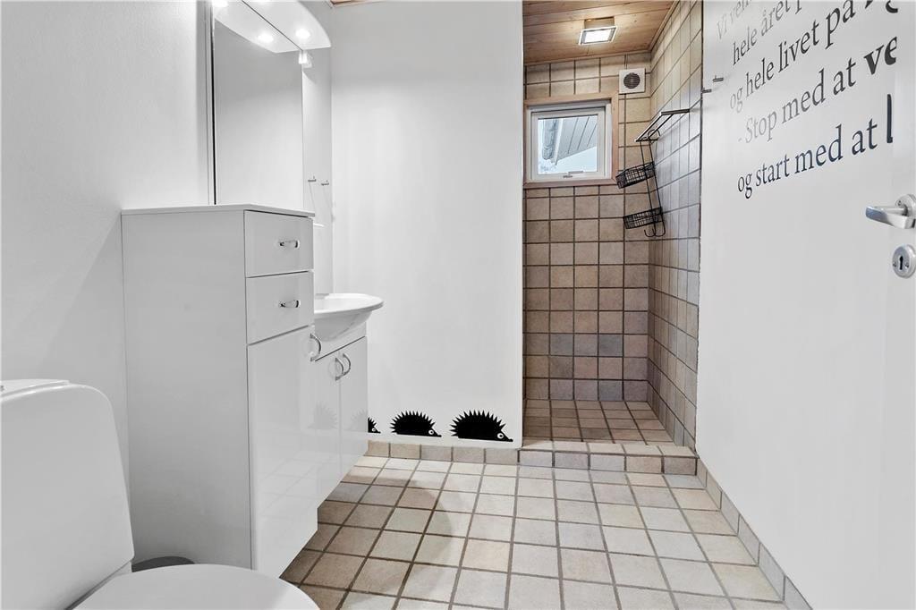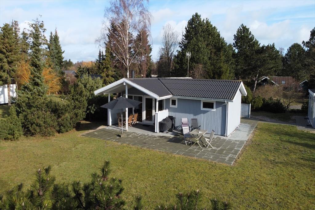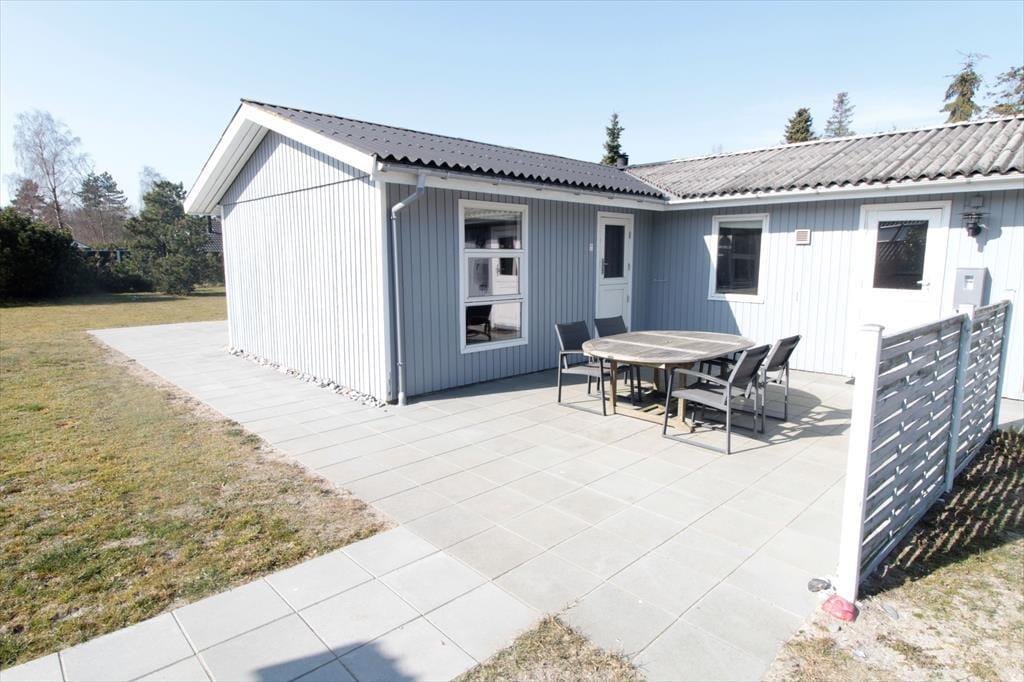 Udenfor findes en dejlig overdækket fliseterrasse, hvor den store fliseterrasse går rundt om huset, samt en god have med masser af græsplæne til boldspil og leg.