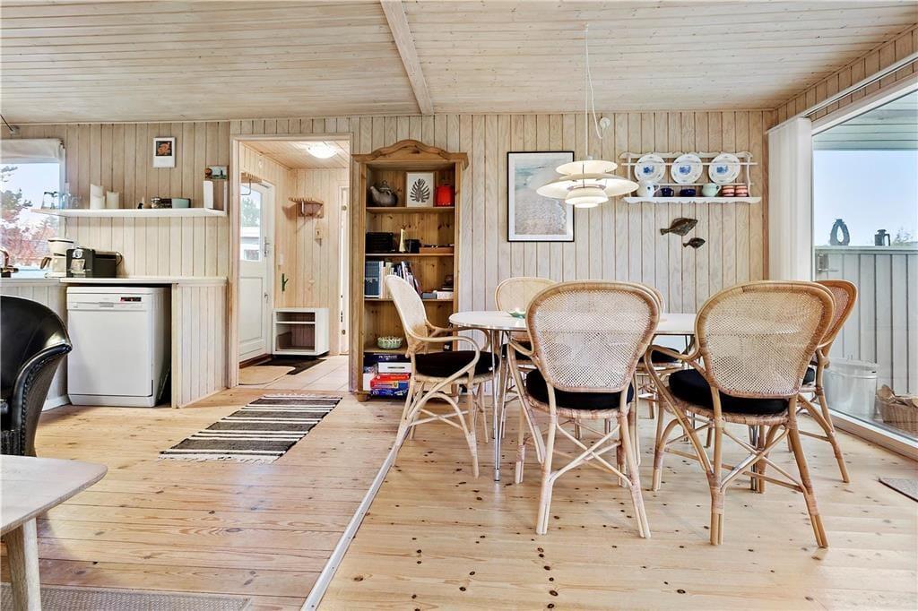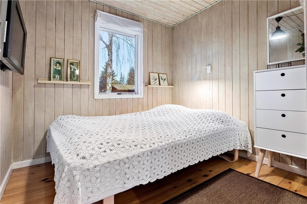 Hyggeligt fritidshus som fremstår i god lys stil og godt indrettet.